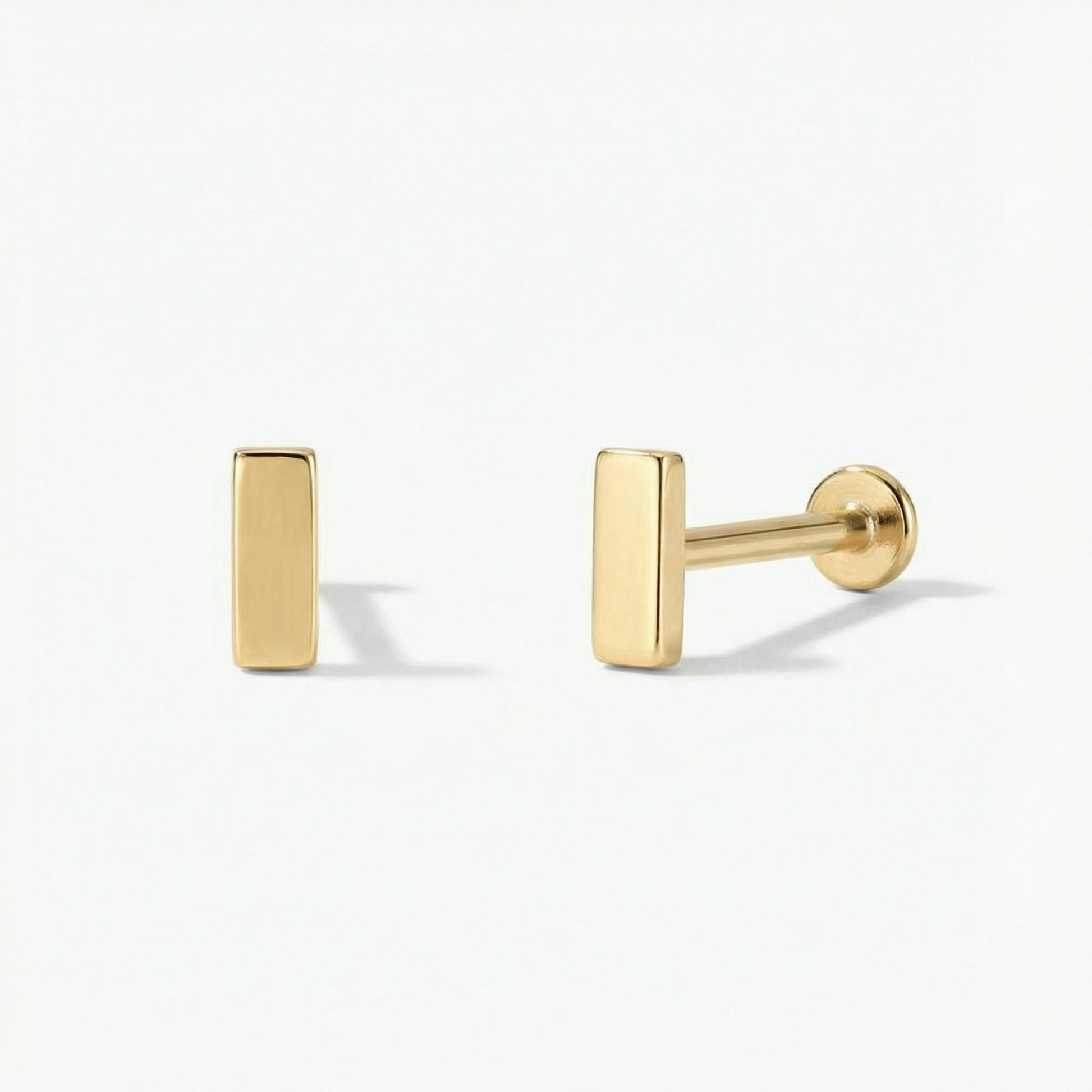 Bar Flat Back Piercing Stud 14K Solid Gold