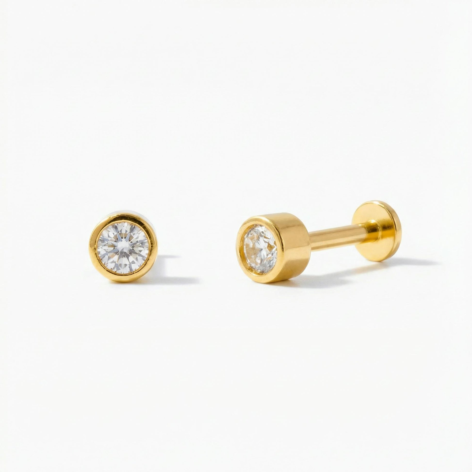 Showcase elegance with our 14k Solid Gold CZ Bezel Piercing Stud, a perfect blend of luxury and style. This exquisite piece features a brilliant cubic zirconia set in a sleek bezel, ideal for both everyday wear and special occasions.