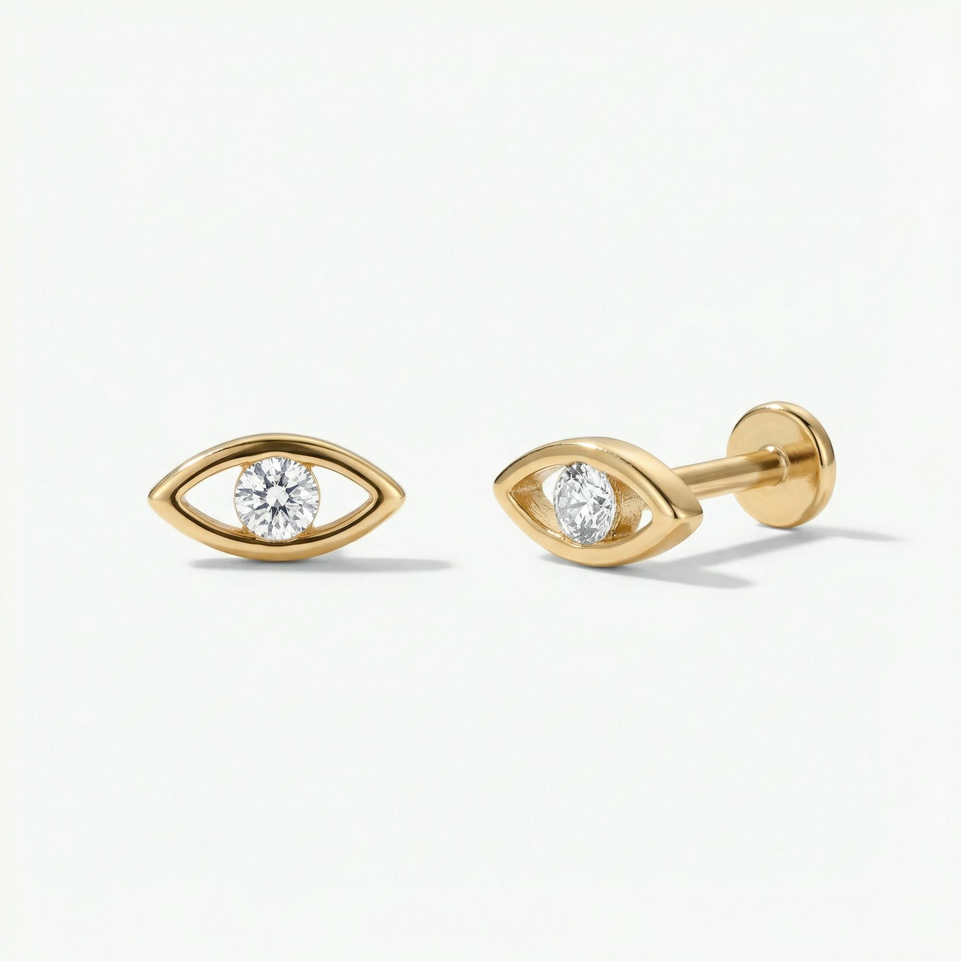 Evil Eye Stud Earring 14K Solid Gold