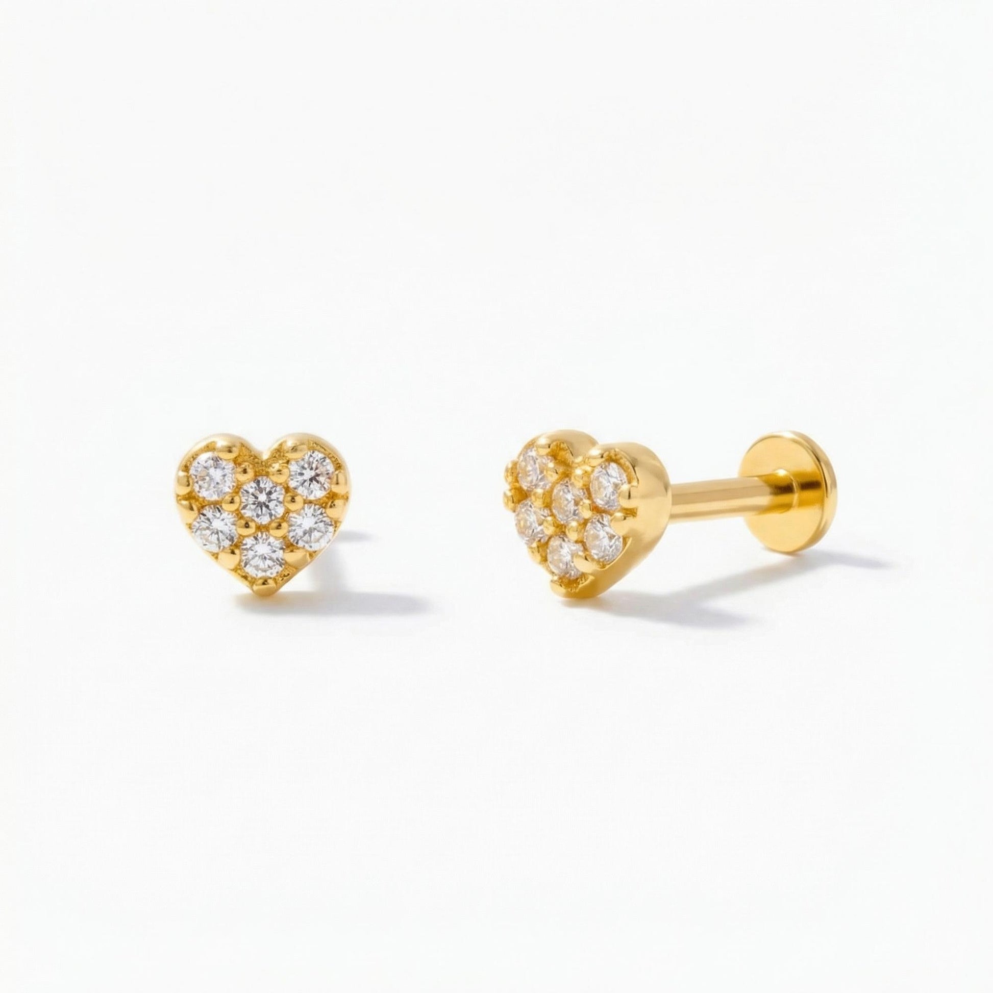 Heart Flat Back Piercing Stud 14K Solid Gold