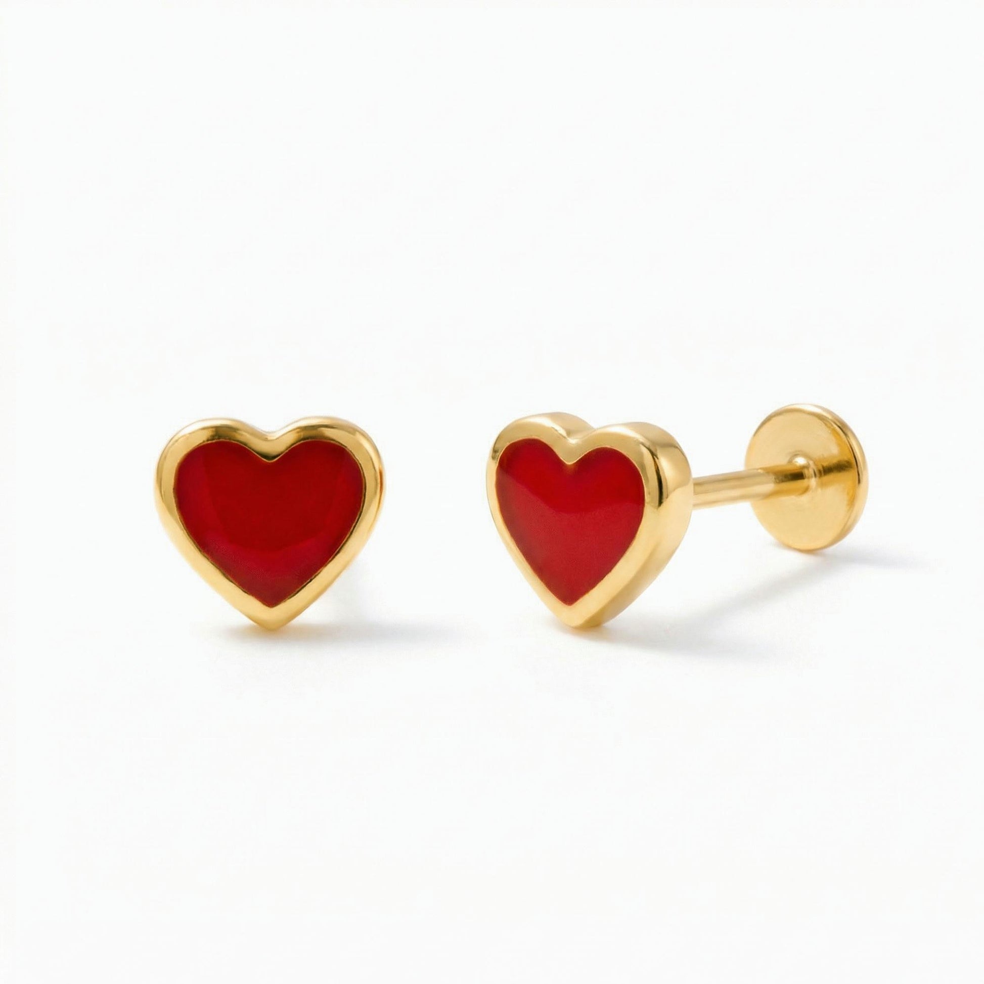 Red Enamel Heart Flat Back Earring – Cartilage Stud 14K Solid Gold