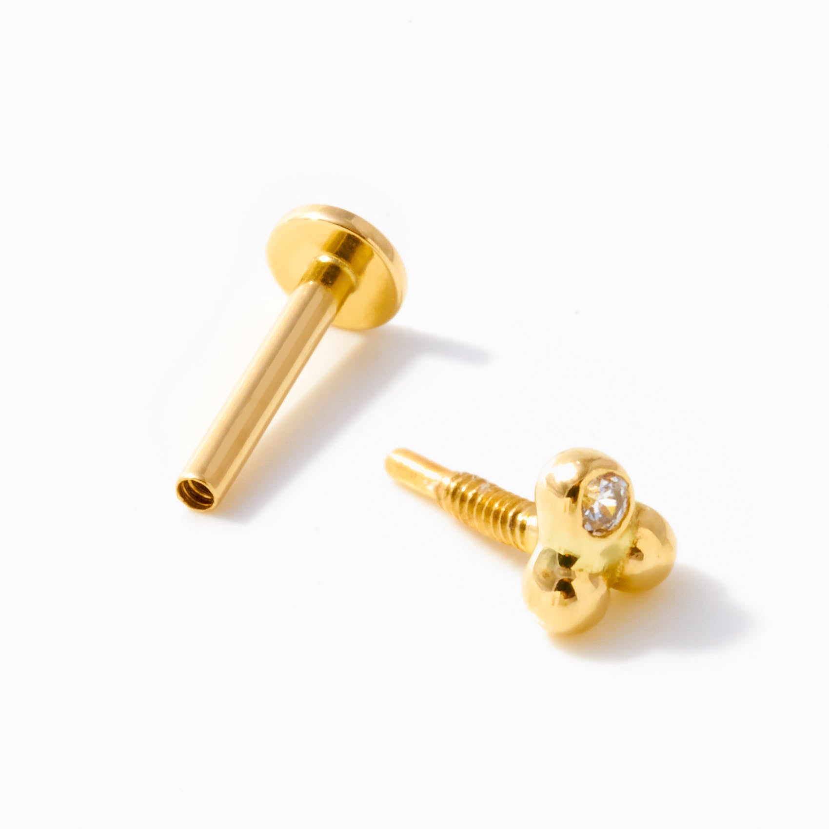 Crafted from luxurious 14k solid gold, the Trinity Piercing exudes elegance and timeless style. This exquisite piece enhances your jewelry collection with its durability and radiant shine, perfect for everyday wear. Elevate your look with this must-have accessory.