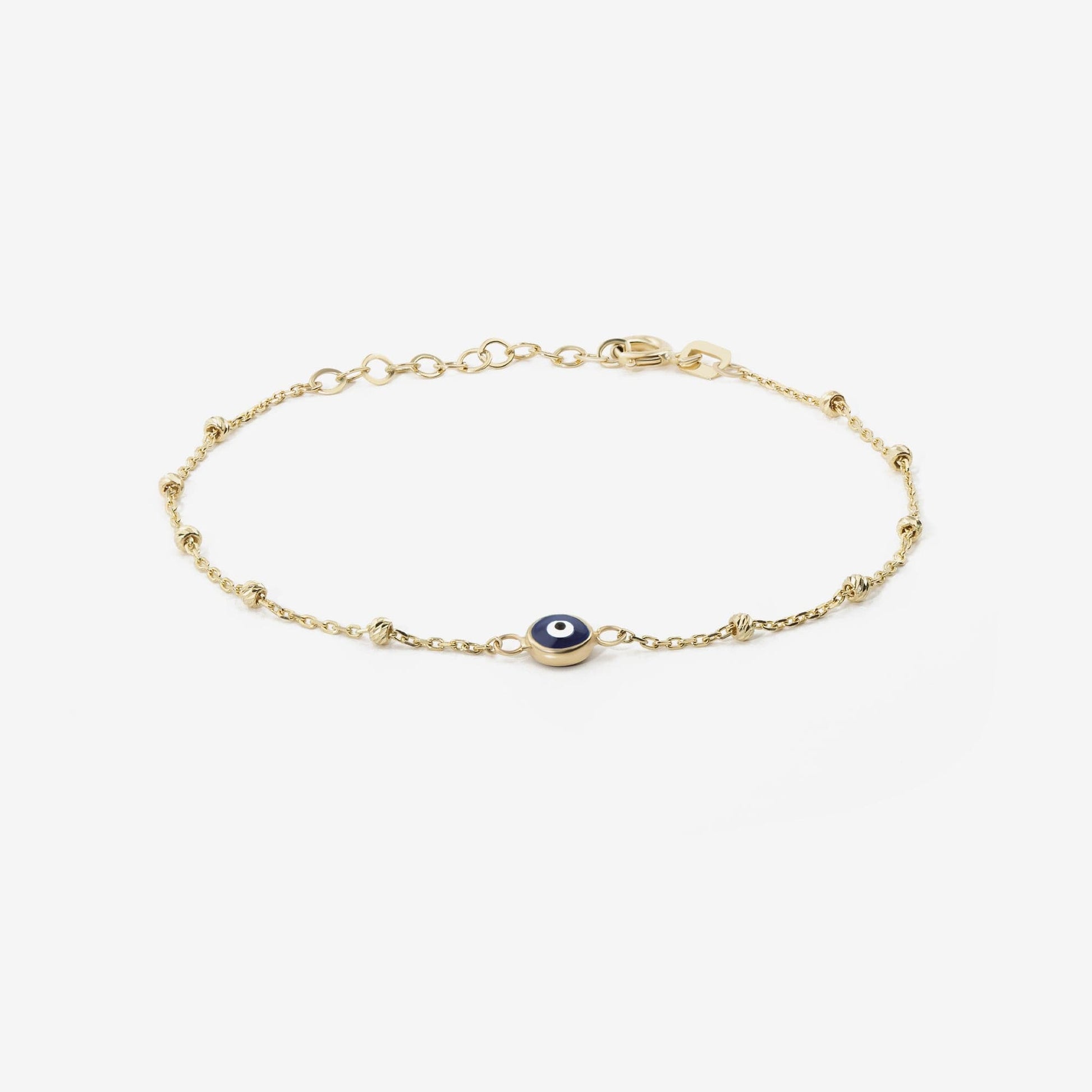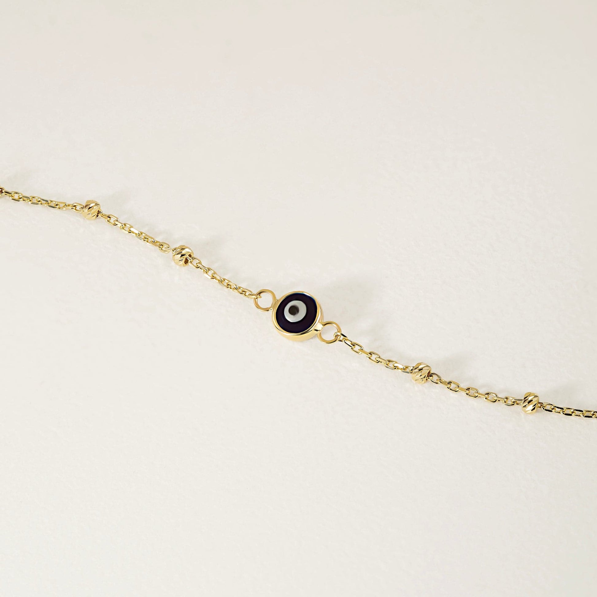 • Bead Chain Evil Eye Bracelet 10K Solid Gold