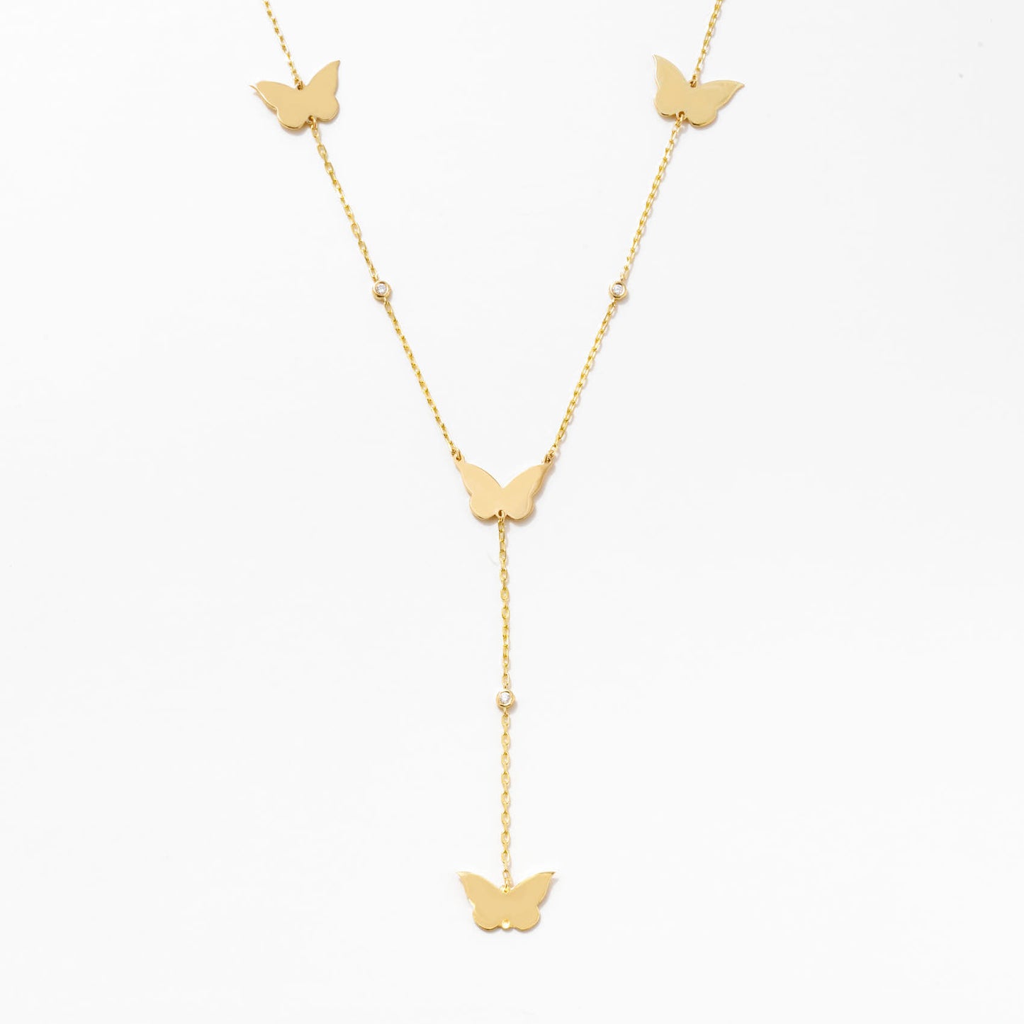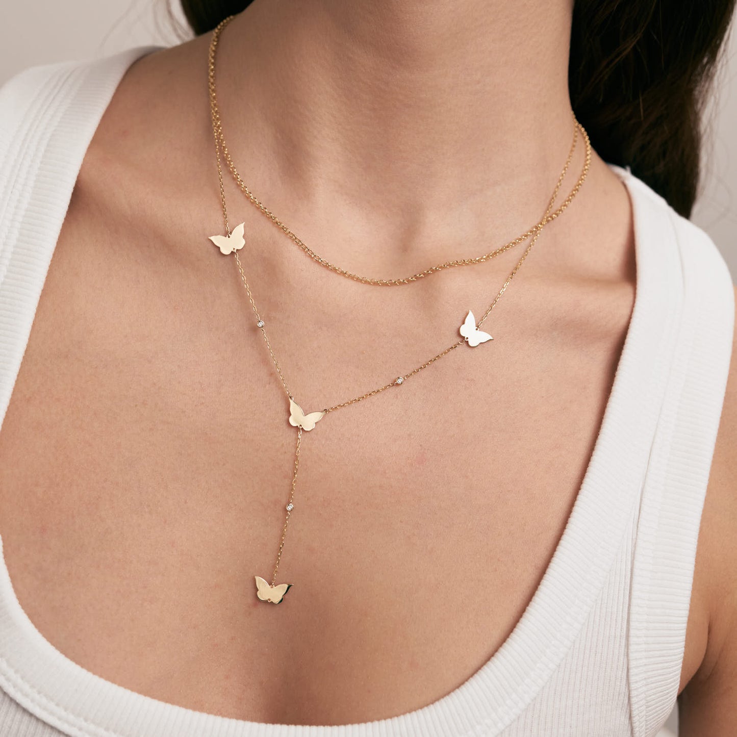 Crafted with precision, the Butterfly Y-Necklace with Diamond in 14k Solid Gold is a must-have luxury accessory. This stunning necklace, adorned with a sparkling diamond, is perfect for adding a touch of elegance to any outfit. Made from durable, high-quality solid gold, it's sure to last a lifetime. The intricate butterfly design signifies transformation and freedom, making it a thoughtful gift for any occasion. With its unique Y-shape, it's trendy yet timeless, effortlessly enhancing your everyday style. Wear it solo or layer it with other necklaces for a chic look. Delight in the enduring beauty of this exquisite piece and let it elevate your jewelry collection.