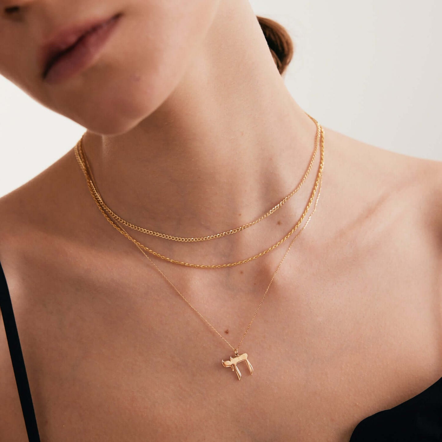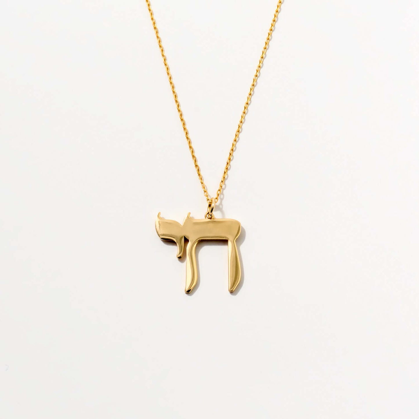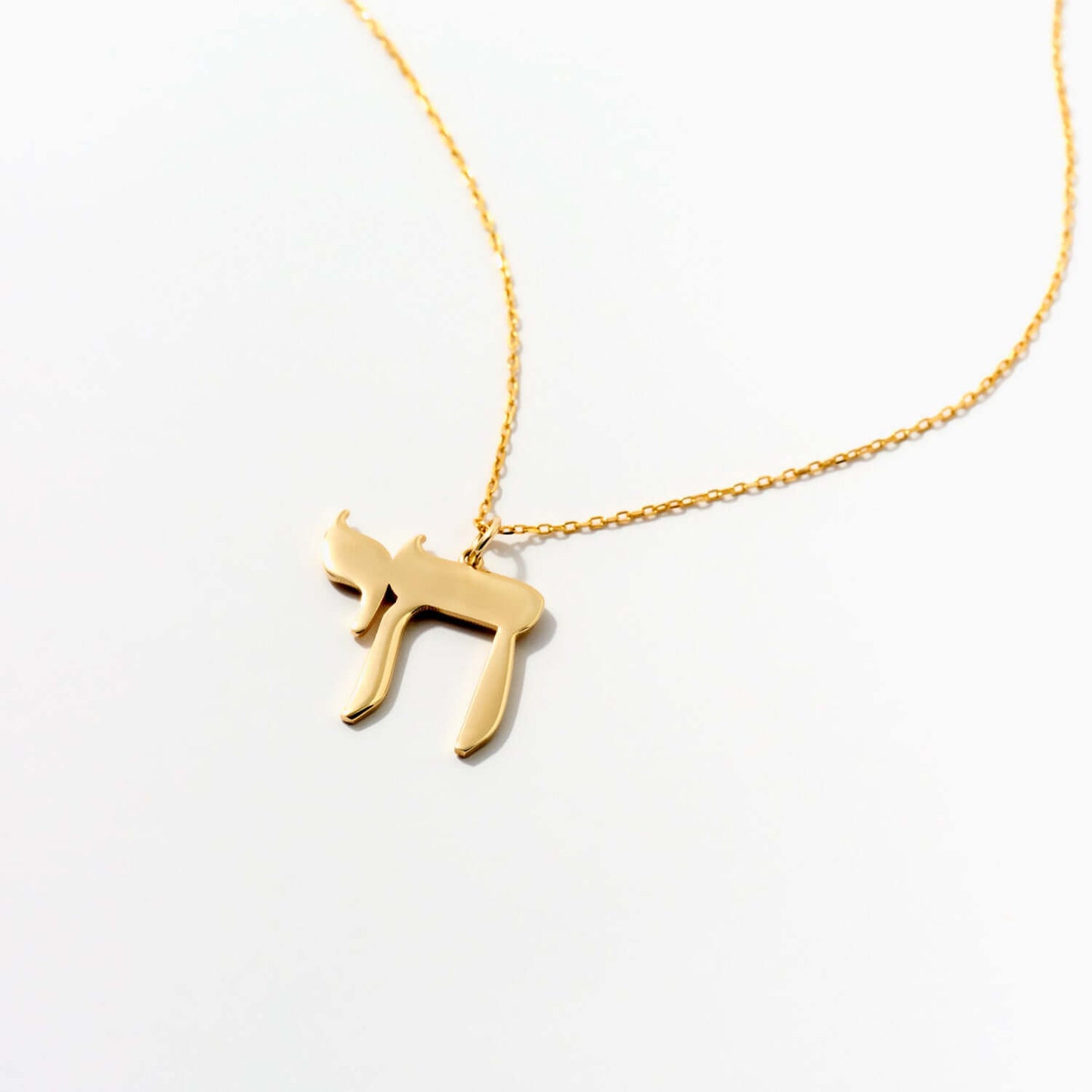 Discover the elegant Hebrew Chai Necklace for Women in 14K Gold, a symbol of life and luck. This stunning Hebrew name necklace, one of our premium women's 14k gold necklaces, makes the perfect birthday gift. Immerse yourself in its beauty and the rich heritage it represents, while also enjoying the lasting shine of quality 14k gold.