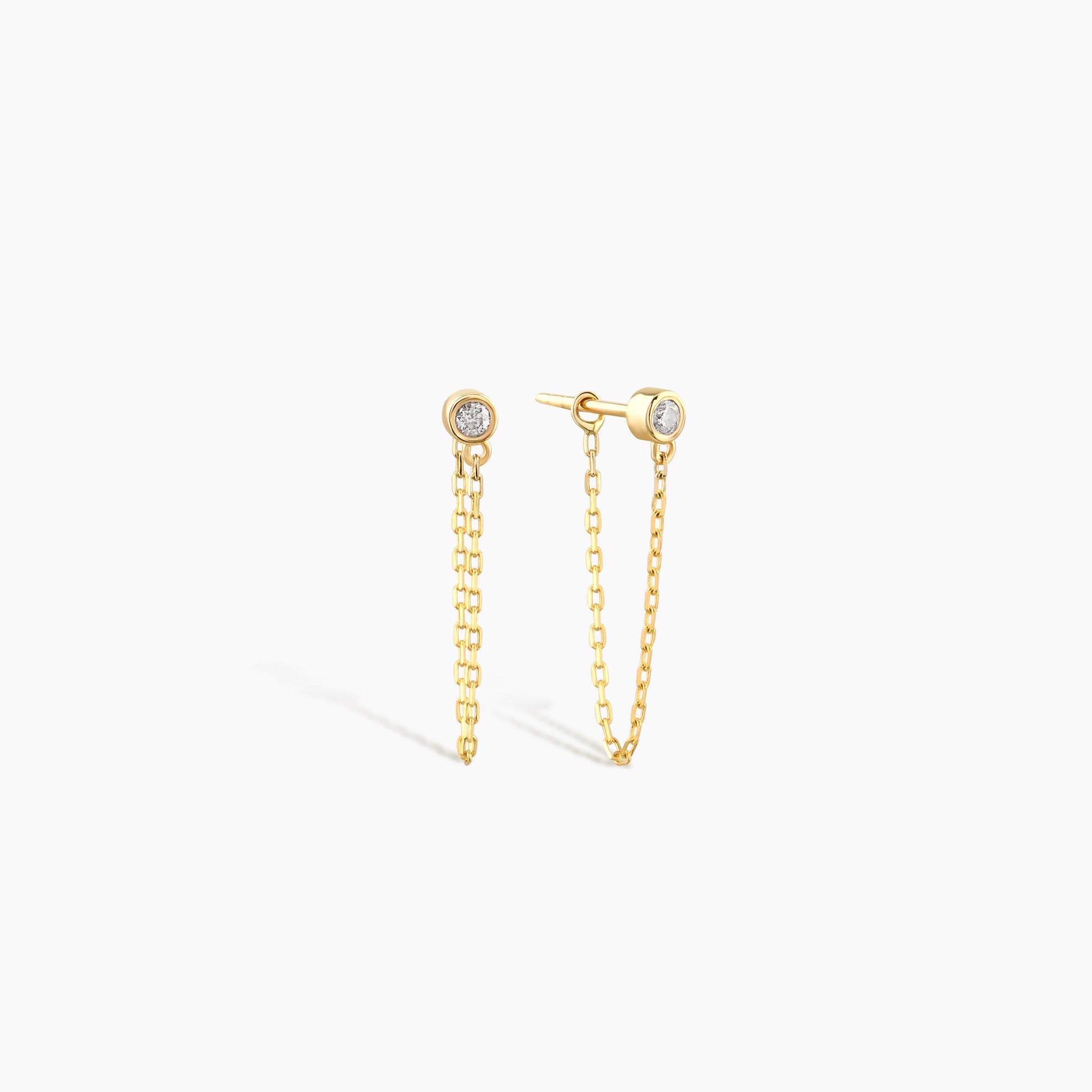 Dainty Diamond Solitaire Threader Chain Earrings 14K Solid Gold