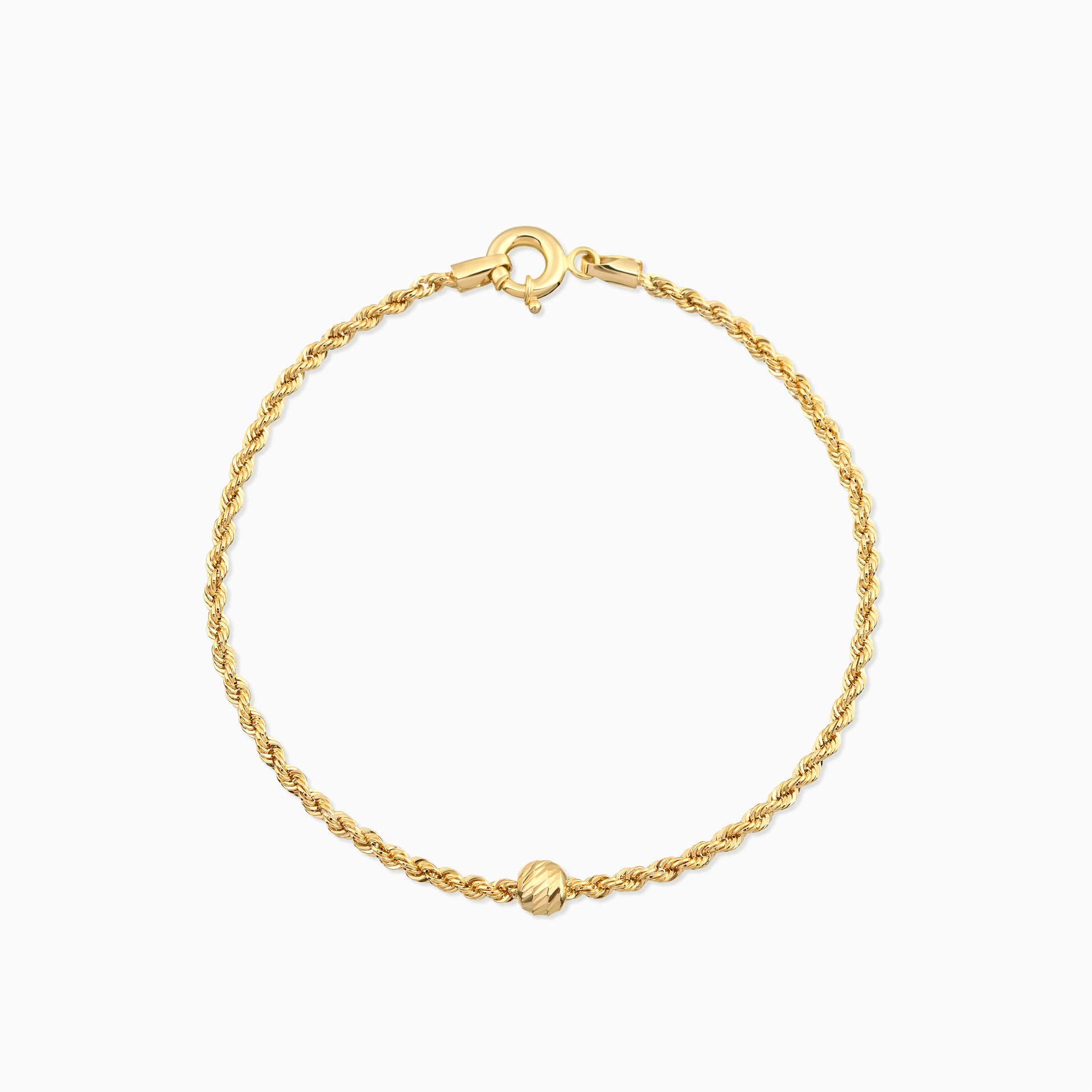 Dainty Rope Chain Bracelet with Bead 14K Solid Gold