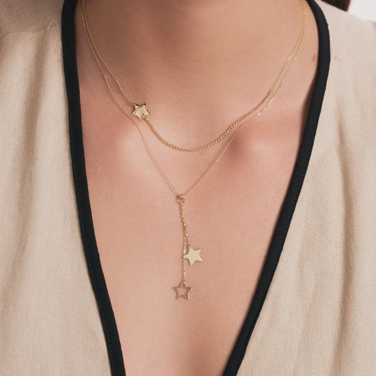 Add a touch of celestial elegance with the Dainty Sideway Star Necklace in 14k Solid Gold. This exquisite piece effortlessly complements any outfit, offering timeless appeal and luxurious shine. Perfect for layering or standalone wear, it's a must-have accessory.