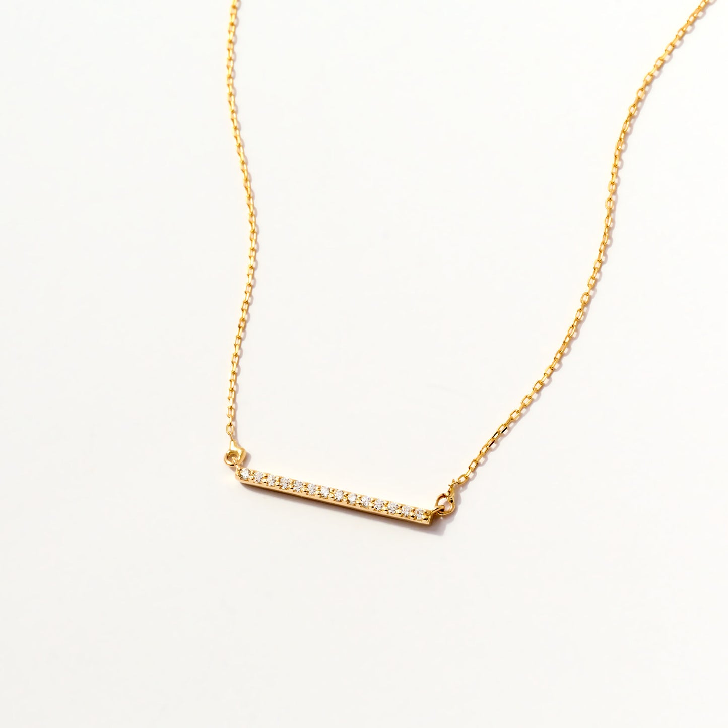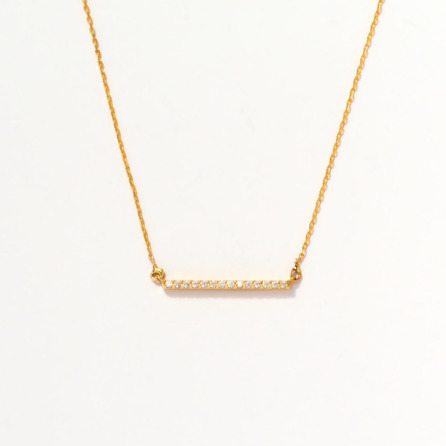 Discover the luxurious elegance of the 14K Solid Gold Diamond Bar Necklace. Exquisitely designed for women, this 14k diamond necklace is an ideal anniversary gift. Adorned with a pave necklace feature, it radiates unmatched charm and sophistication, enhancing any outfit with a touch of sparkle.