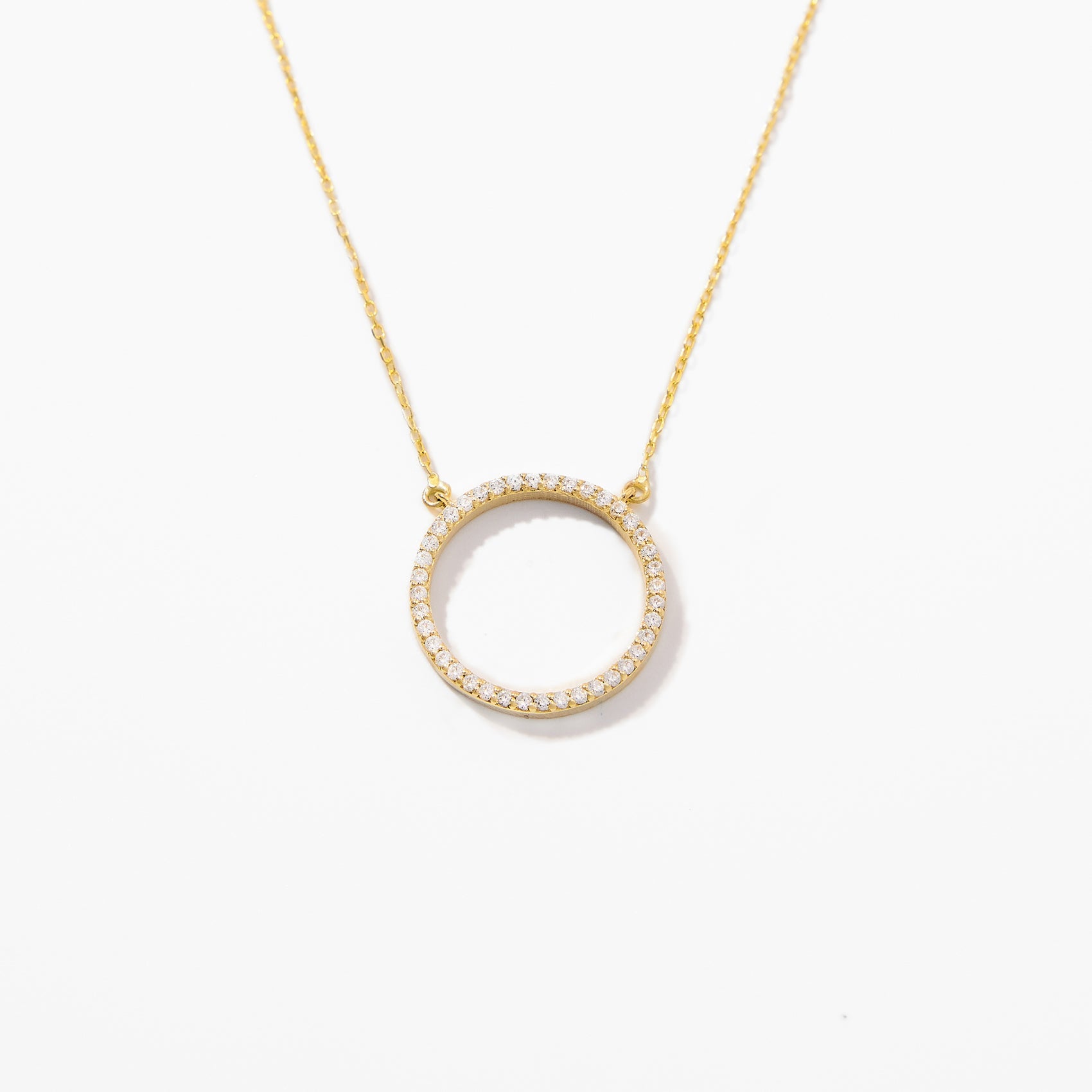 Adorn yourself with elegance and sophistication with our Diamond Circle Necklace in 10K Solid Gold. This exquisite piece features a dazzling diamond centerpiece, perfect for elevating any ensemble. Ideal for daily wear or special occasions, it radiates timeless charm.