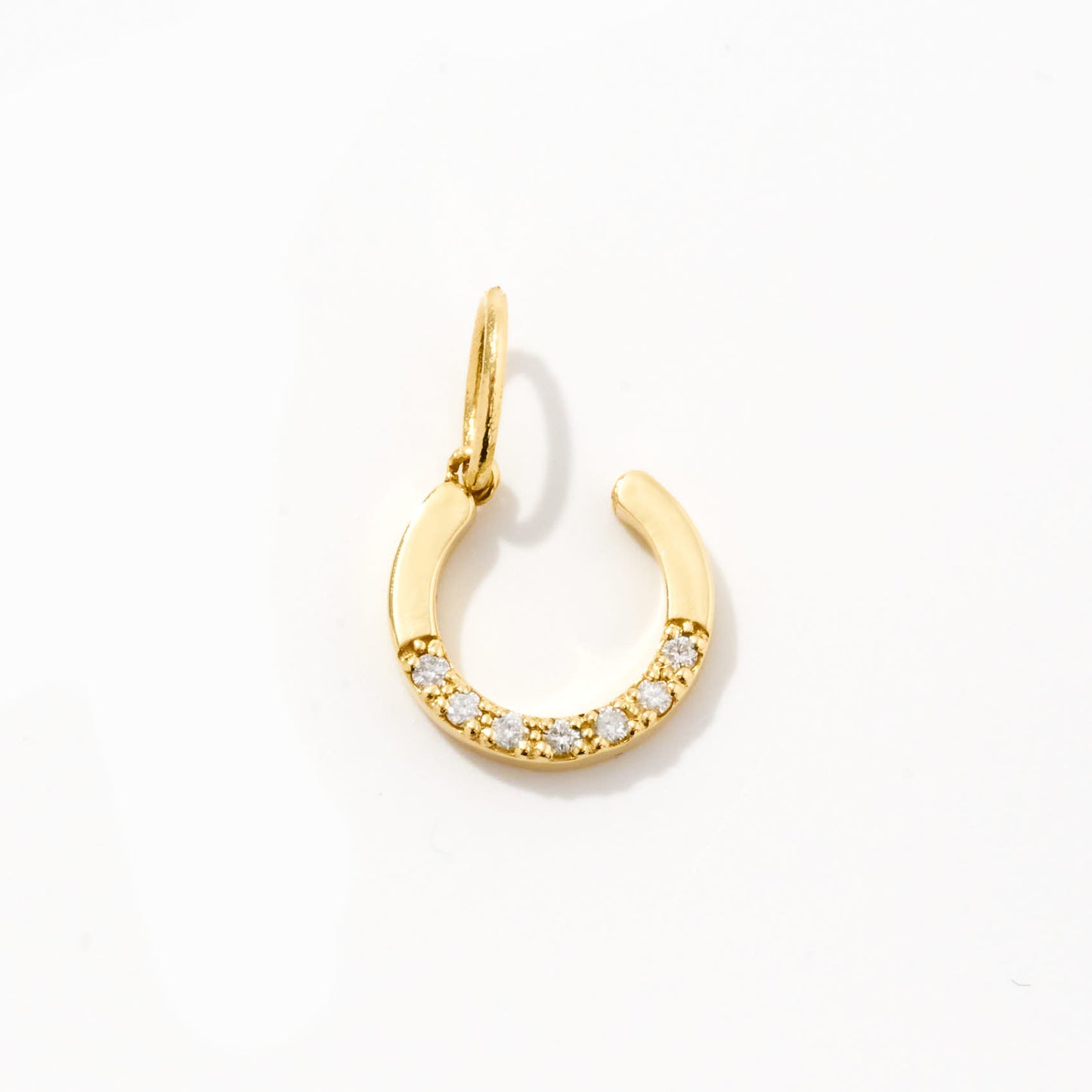 Unveil your luck and sophistication with the Diamond Horseshoe charm in 14k Solid Gold. Gracefully handcrafted and accented with a precious diamond, this charm exhibits both luxury and sentiment, making it a meaningful piece to possess. Tailored to perfection, this Horseshoe charm is a timeless accessory that adds the right amount of sparkle to any look.