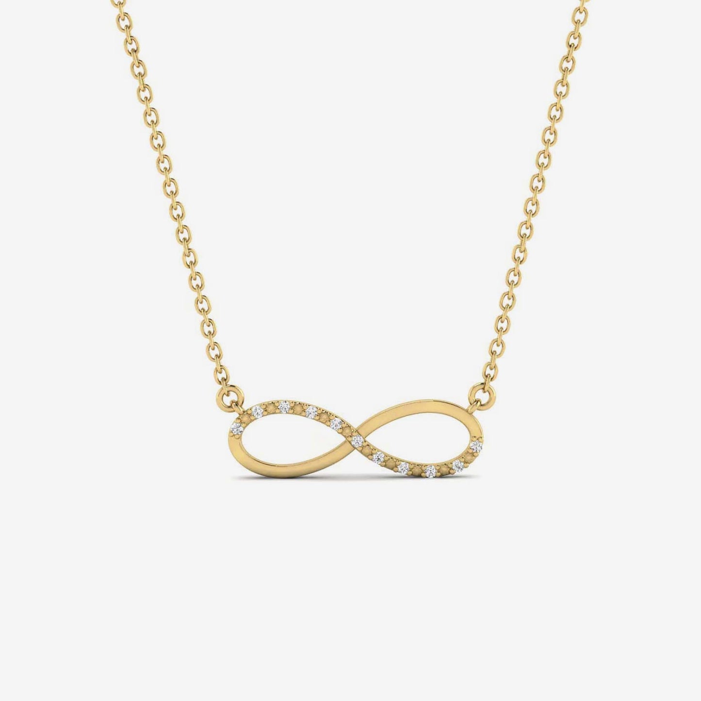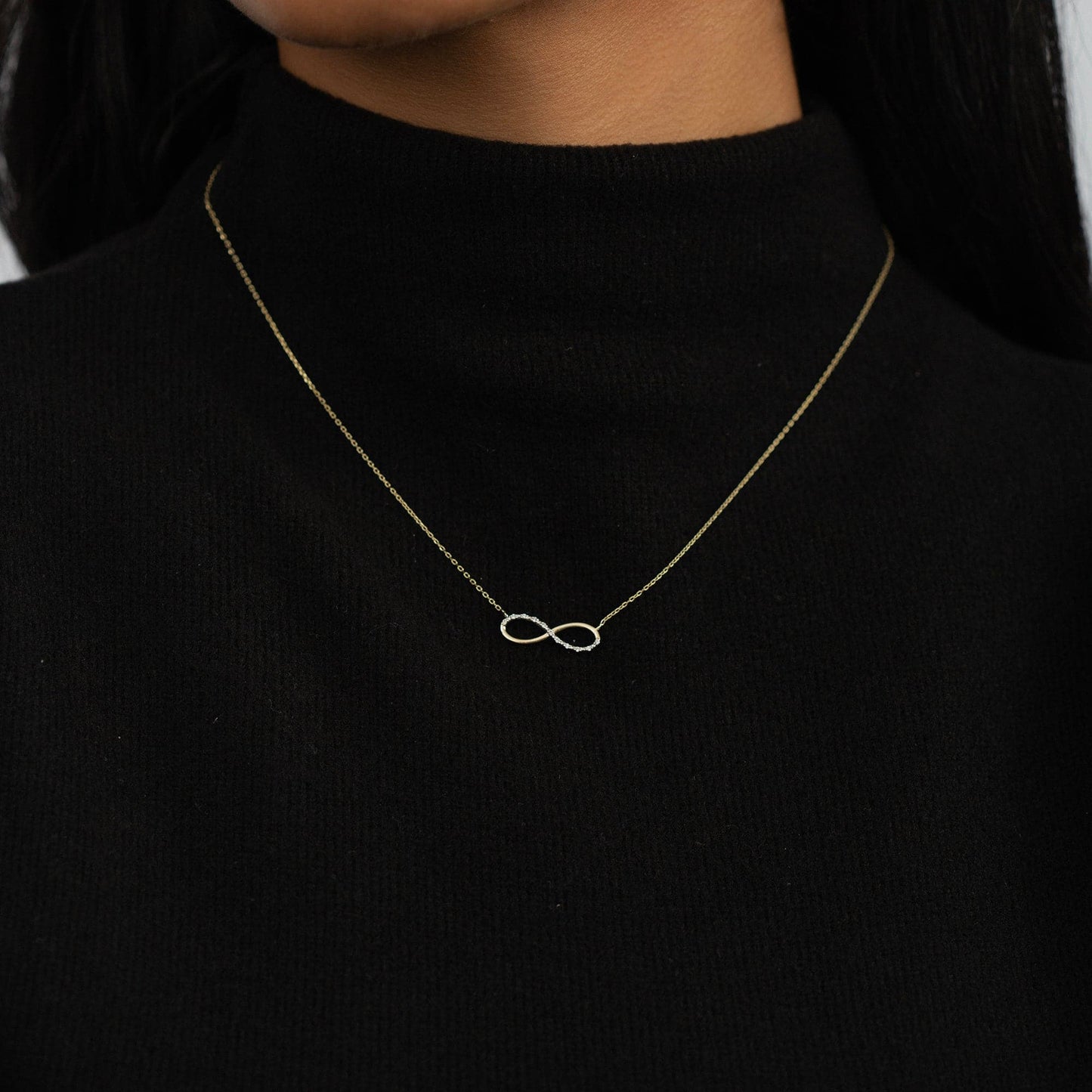 This stunning Diamond Infinity Necklace in 14K Gold is the perfect gift for any occasion. The infinity symbol represents eternal love, making it a meaningful and timeless piece. The necklace is crafted with high-quality materials and features dazzling diamonds that sparkle in any light. Give the gift of love and beauty with this exquisite necklace.