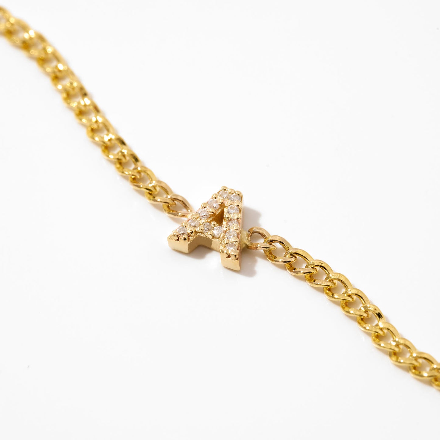 Innovate your style with our Diamond Initial Bracelet in 14k Solid Gold. This luxurious piece is not just a fashion statement, but a unique way to express your identity. Crafted with high-quality, brilliant-cut diamonds, it offers enduring shine and elegance. Perfect for daily wear or special occasions, this bracelet is a remarkable blend of sophistication and personal touch. The 14k solid gold ensures durability, while the diamond initial adds a bespoke element. A must-have for jewelry enthusiasts, it makes an ideal gift for loved ones. Boost your jewelry collection with this timeless piece and let your wrist do the talking.
