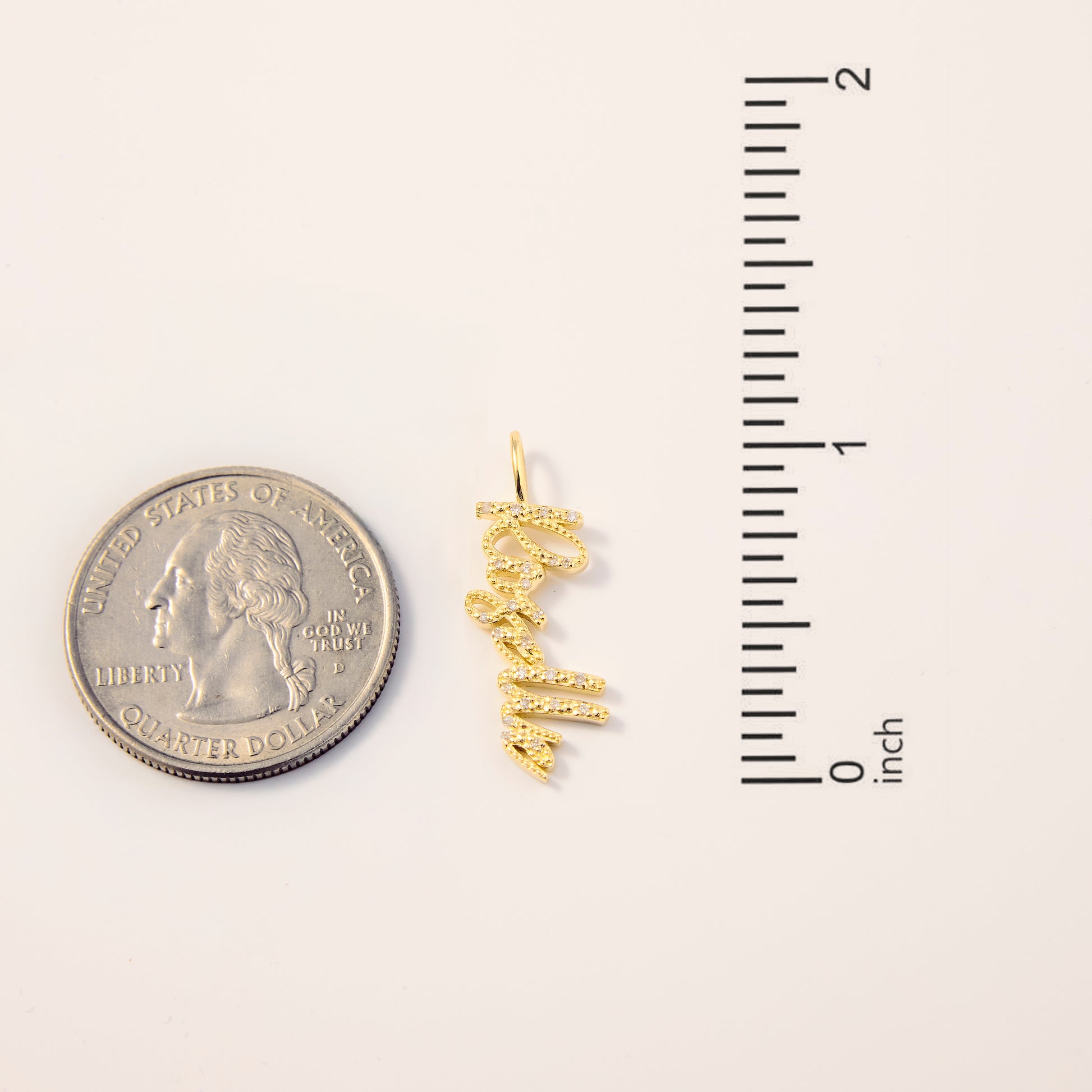 Showcase your elegance with our Diamond Name Charm in 10K Solid Gold. This stunning piece of jewellery, embedded with sparkling diamonds, offers a unique way to personalise your look. Be it Jennifer, Michele, Crystal, or your own name, this charm exudes a classic charm while making a statement about your individual style. Perfect for daily wear or special occasions, this pendant is a luxurious way to express your love for personalised jewellery.