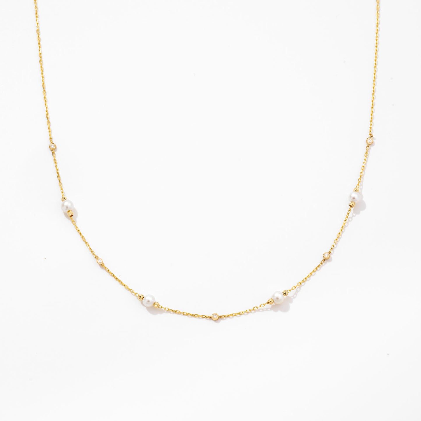 Diamonds and Pearls by the Yard Drop Necklace 14K Solid Gold