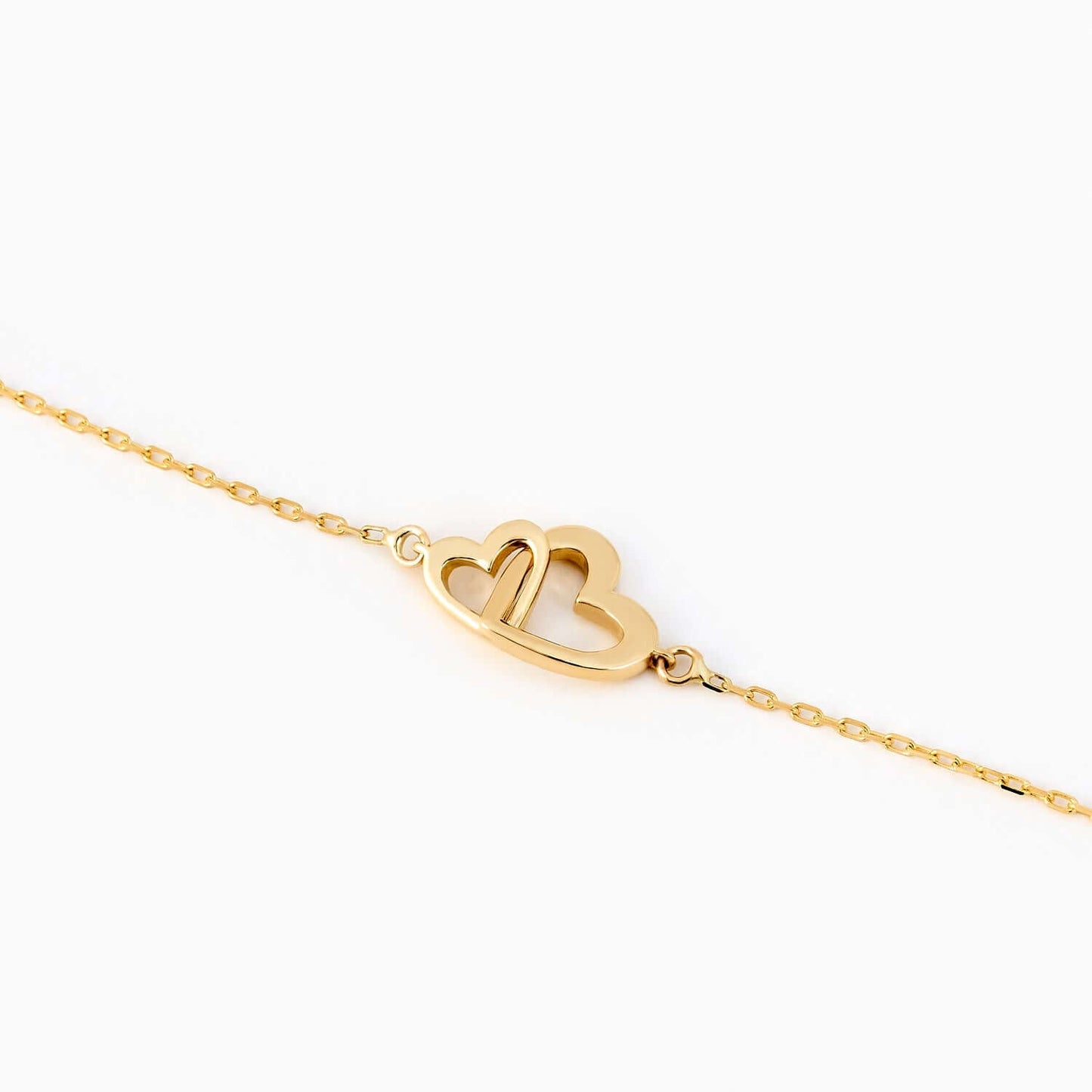 Showcase your love with the Interlocking Heart Bracelet in 14K Solid Gold. This meticulously crafted double heart bracelet for women is the perfect representation of eternal connection and affection. As a piece of 14k gold jewelry, it offers enduring shine and durability. Ideal as a couple bracelet or a thoughtful gift for her, this bracelet seamlessly blends style, sentiment, and quality. Its unique design and solid gold appeal make it a must-have addition to any jewelry collection.