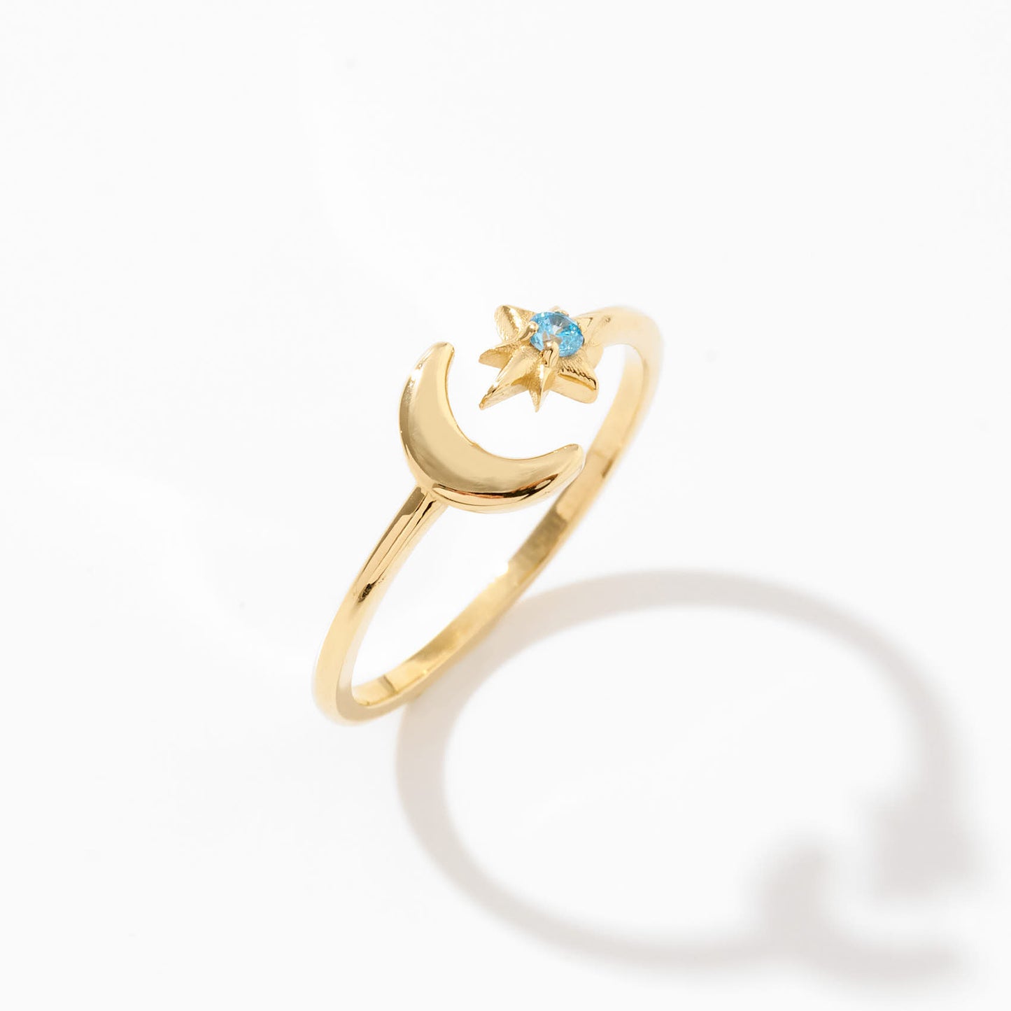 Innovate your fashion statement with our Moon & Star Birthstone Ring in 14k Solid Gold. This exquisite piece, embedded with your chosen birthstone, combines celestial elegance with personal significance. The high-quality solid gold ensures durability, making it perfect for everyday wear or special occasions.