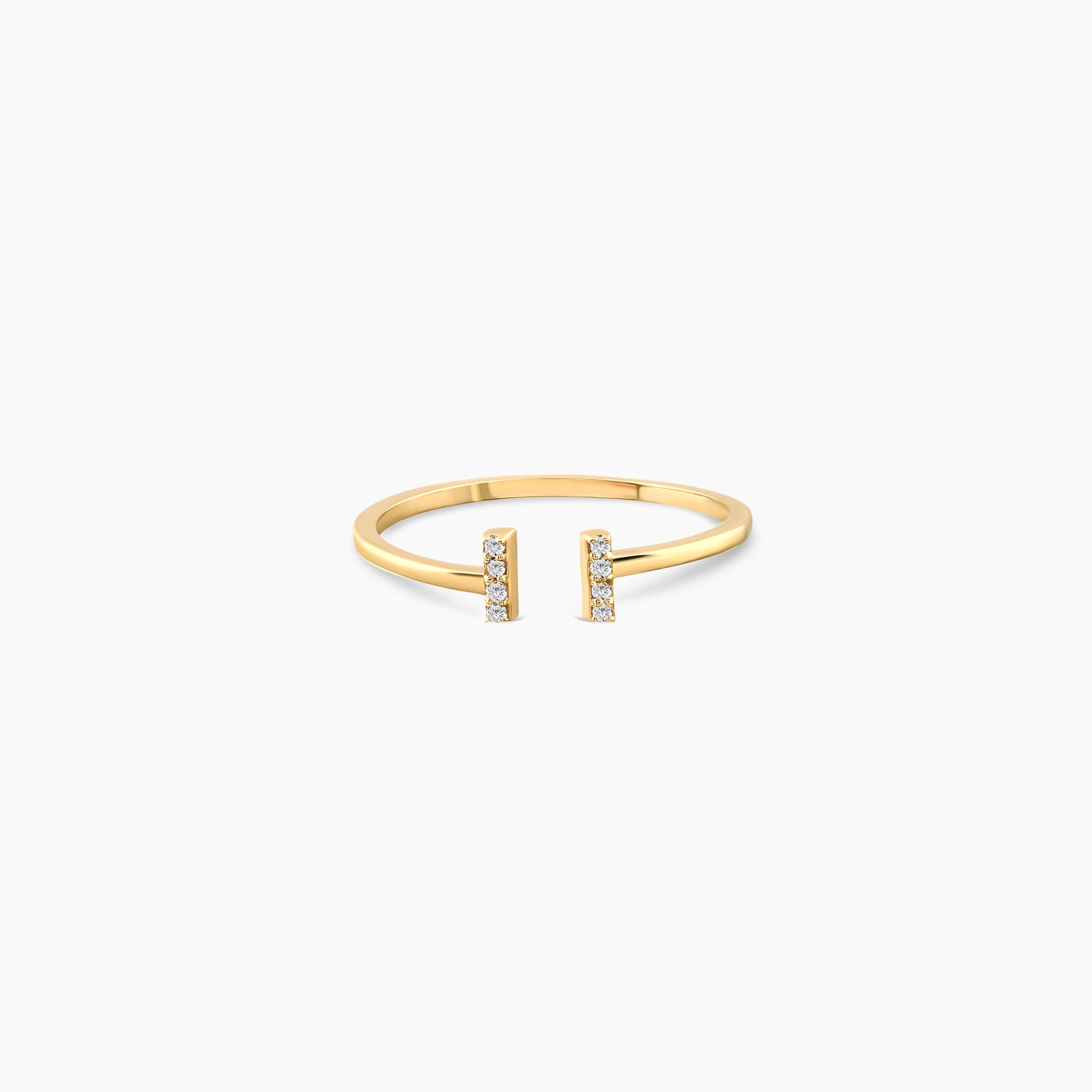 Open Ring with Diamond Bars 14K Solid Gold