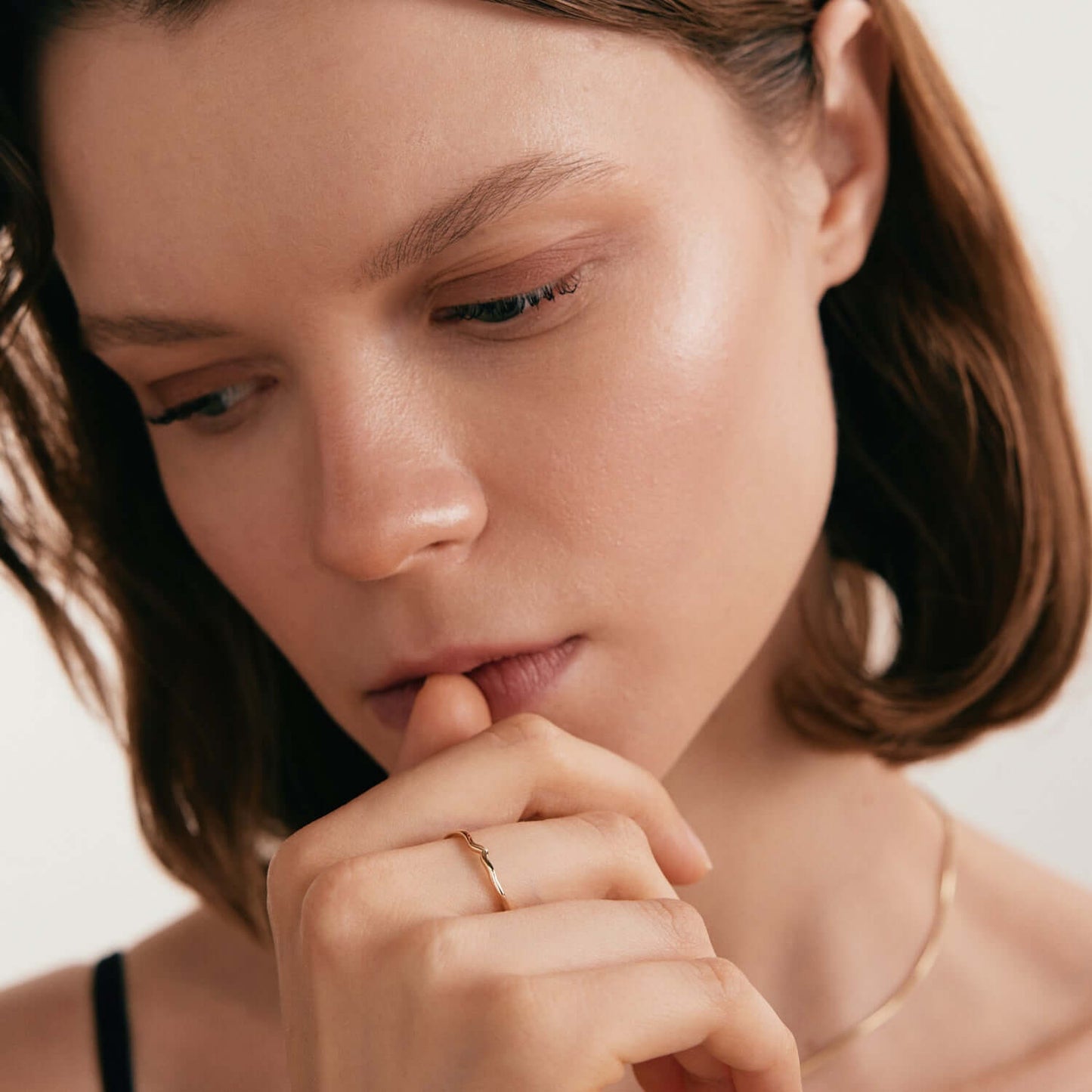 Elegant Wave Band Ring in 14K Solid Gold exudes minimalist beauty, perfect for the stylish woman. As a symbol of the sea's eternal rhythm, this dainty wave ring becomes an everyday summer jewelry essential. Its stackable design offers versatility, making it an ideal minimalist gift. Crafted from 14K gold, it promises durability and timeless shine.