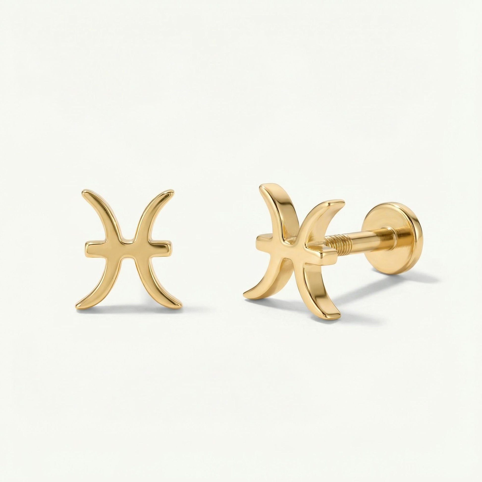 Zodiac Piercing Threaded Stud Earring 14K Solid Gold
