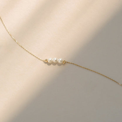 • 3 Pearls Bracelet 10K Solid Gold