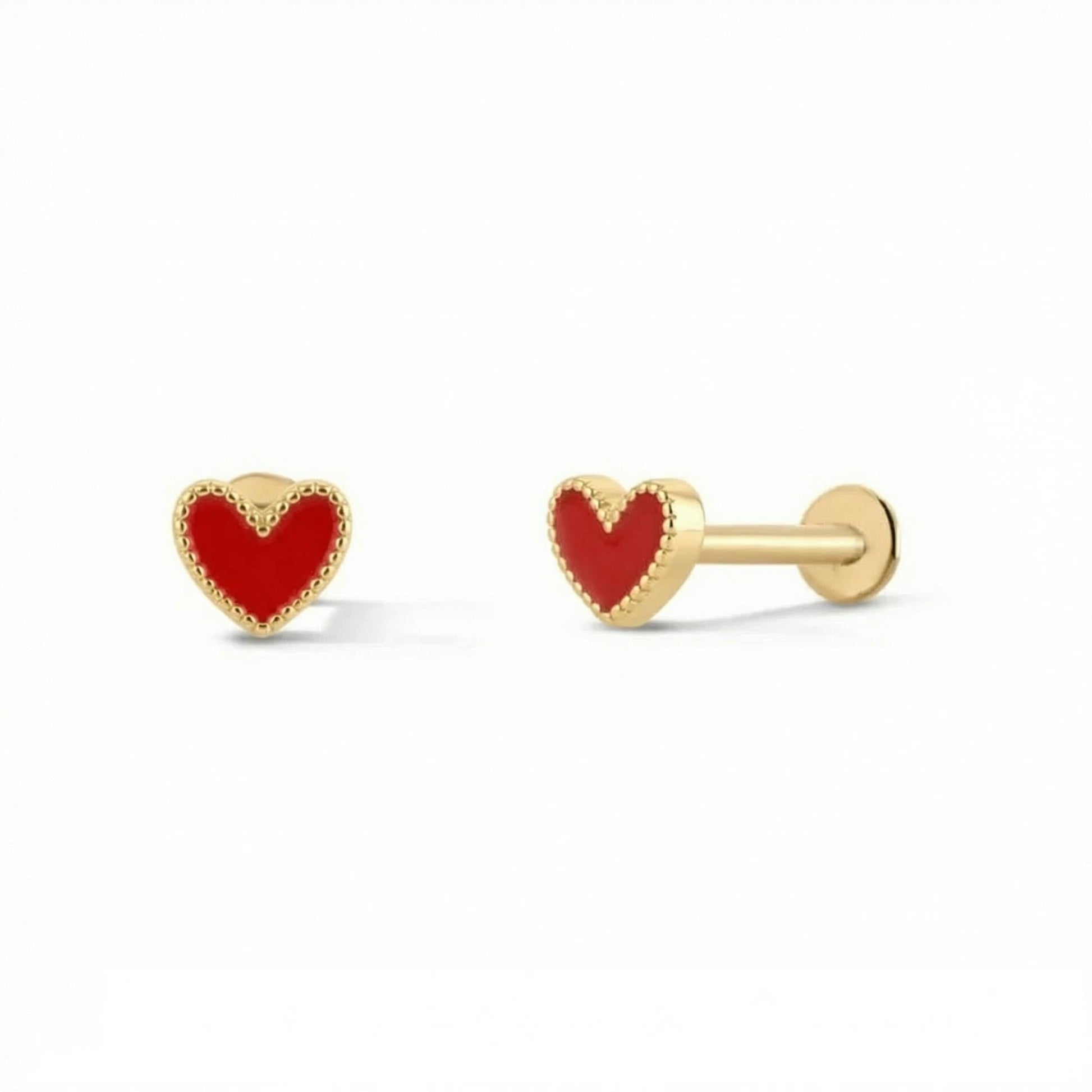 Red Heart Stud Earring 14K Solid Gold