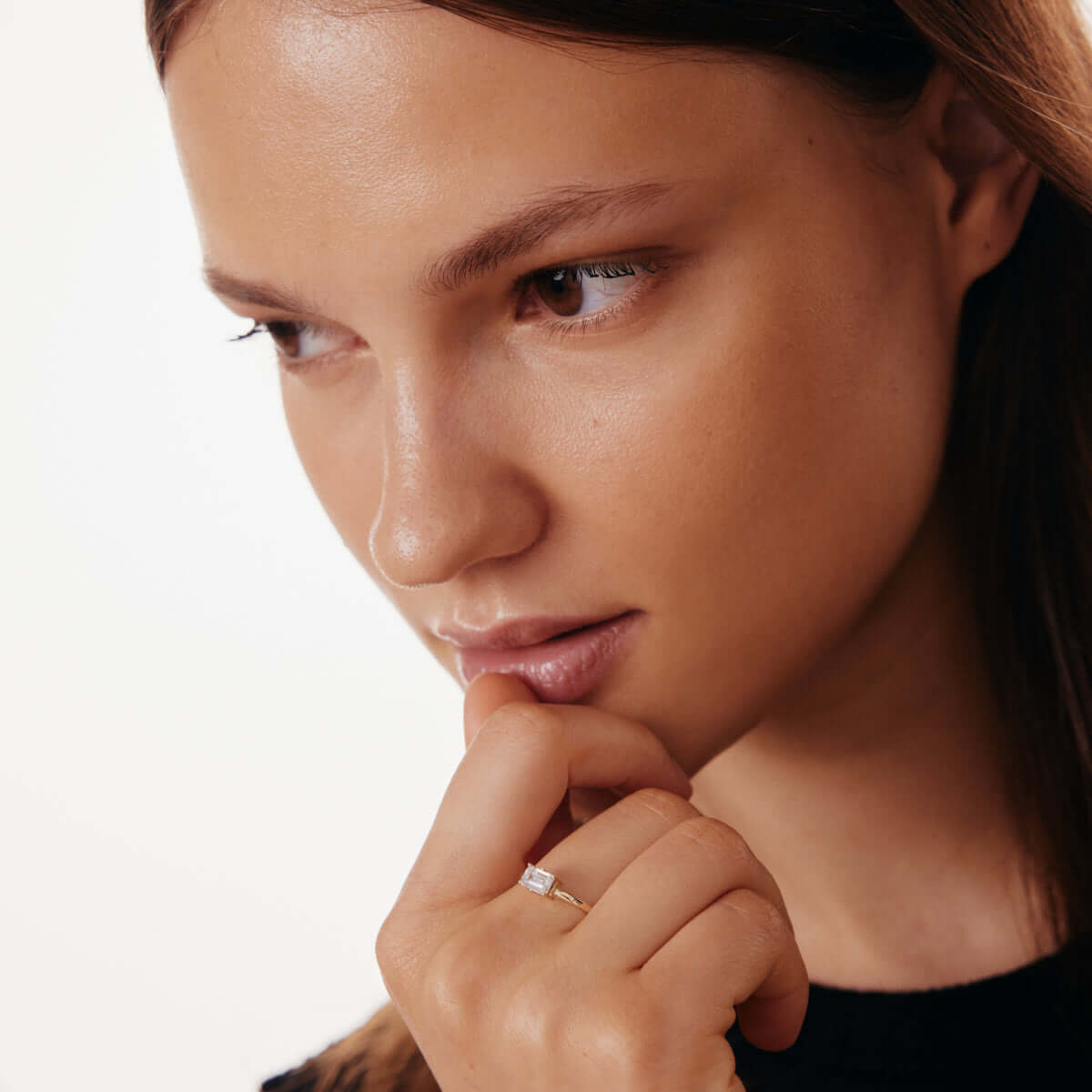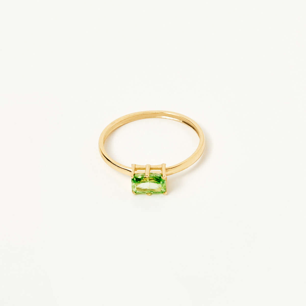 Introducing the Baguette Birthstone Solitaire Ring in 14K Gold. This gorgeous ring features a brilliant baguette-cut birthstone set in a 14k gold band. With its timeless design and quality craftsmanship, this ring is the perfect accessory to add a touch of sophistication to any outfit. Available in a range of birthstone options, this ring allows you to personalize your style and showcase your unique style.
