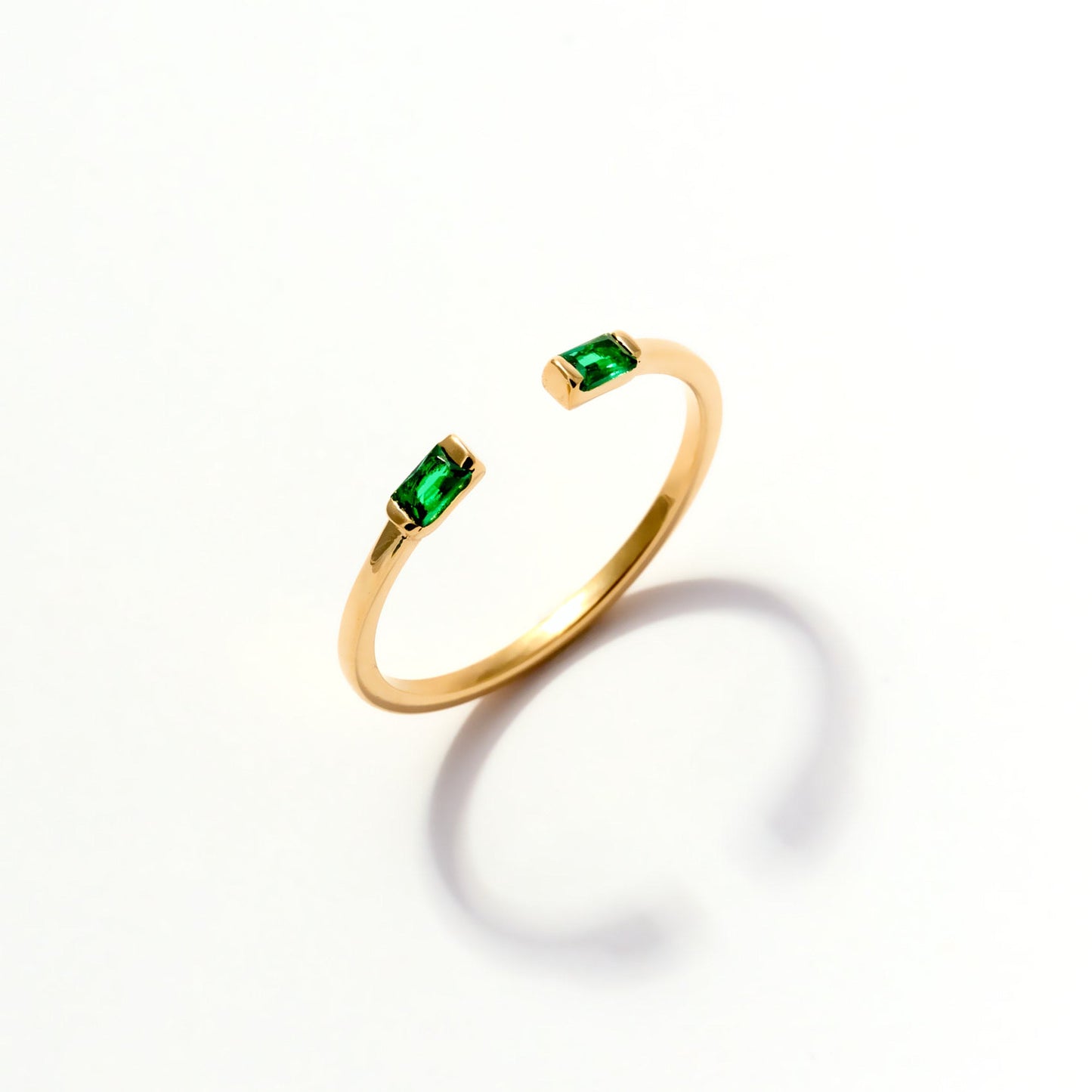 Birthstone Duo Baguette Open Ring 10K Solid Gold