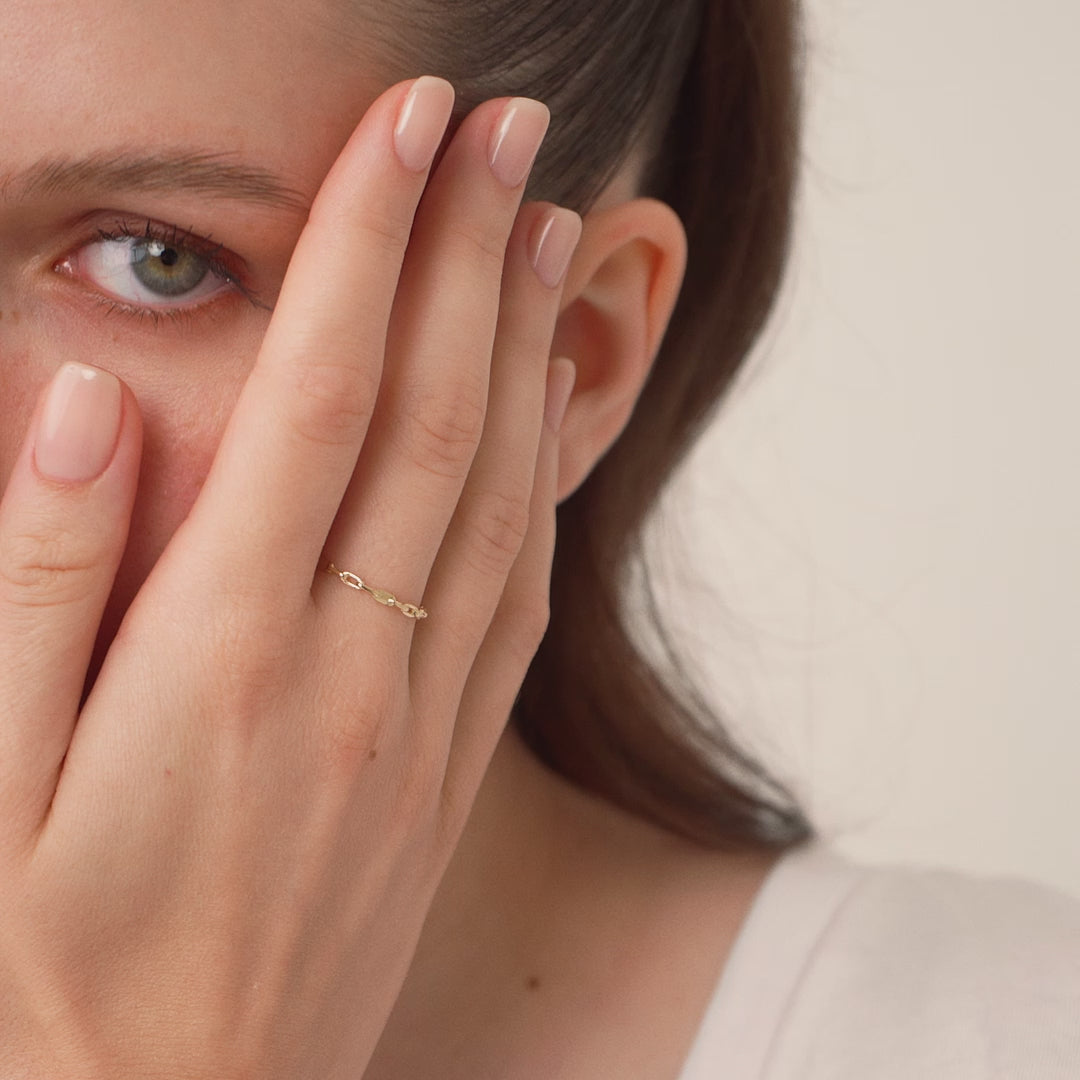This ring with a chain design symbolizes your everlasting love. It's a considerate present for those you love most.