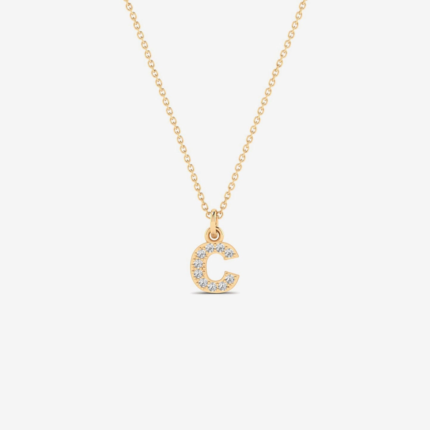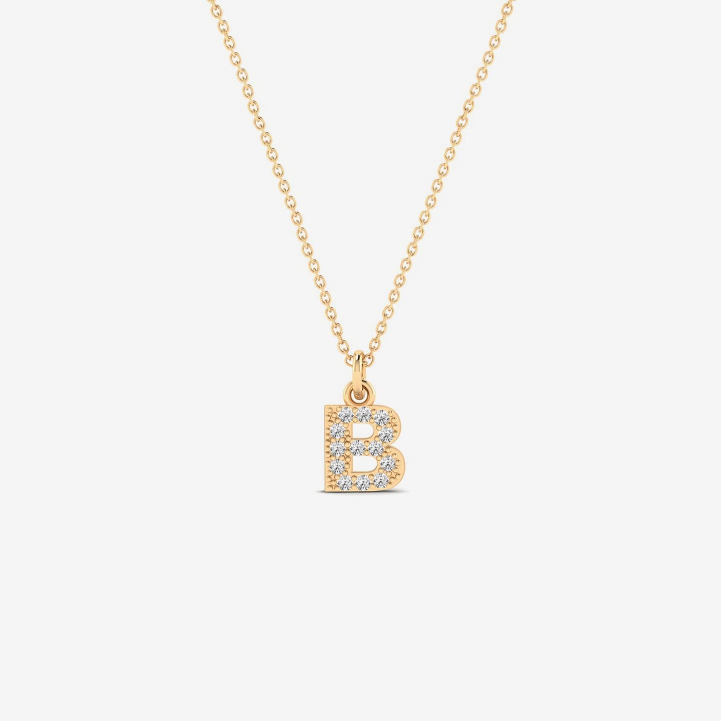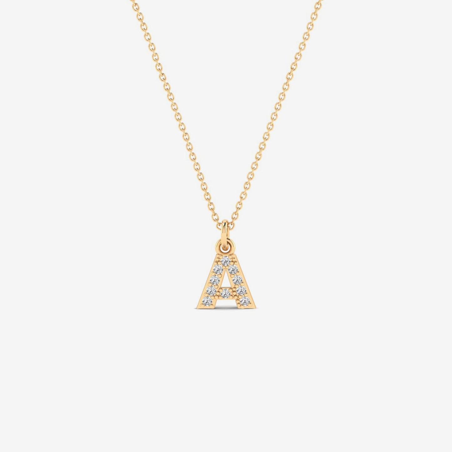 Custom Diamond Pave Initial Necklace 14K Solid Gold
