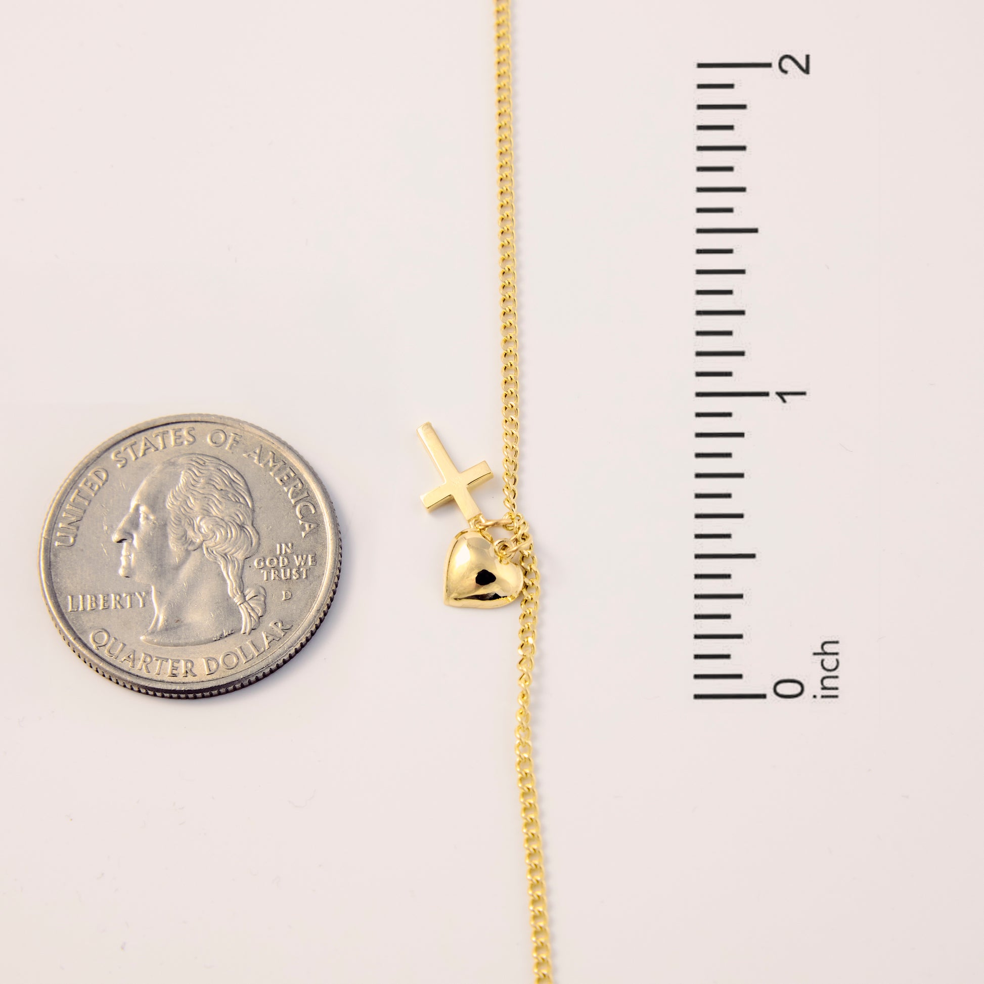 Cross and Heart Charm Bracelet 14K Solid Gold