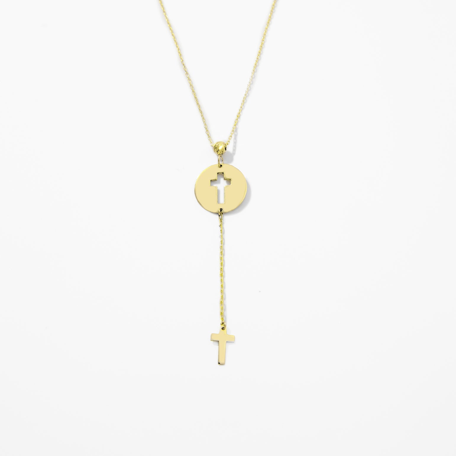 Cut-Out Cross Y-Necklace 10K Solid Gold
