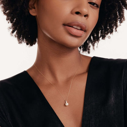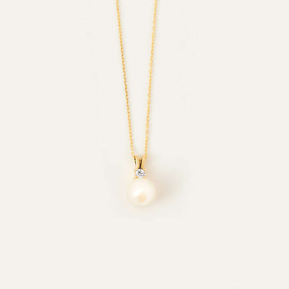 This CZ and Pearl Pendant Necklace in 10K Gold is a breathtaking piece of jewelry, perfect for making a fashion statement. Adorned with a cubic zirconia and a pearl, this 10K real gold jewelry is the perfect gift for that special someone. With its timeless appeal and sophisticated design, this dainty necklace is sure to impress and delight. Ideal for special occasions or just to make every day feel special, it's a must-have piece for every woman's jewelry collection.