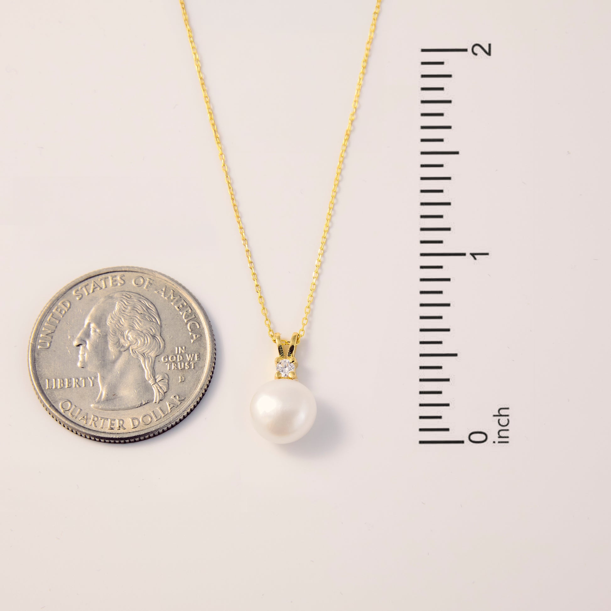 CZ and Pearl Pendant Necklace 14K Solid Gold
