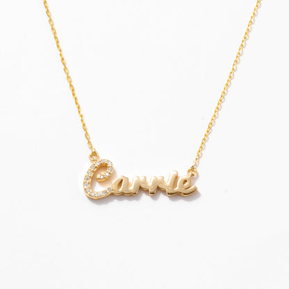 Showcase your individuality with a Diamond Carrie Name Necklace in 10K Solid Gold. This exquisite piece, intricately studded with radiant diamonds, offers a personalized touch to your jewelry collection.
