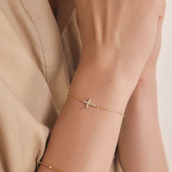 Diamond Cross Charm Bracelet 14K Solid Gold