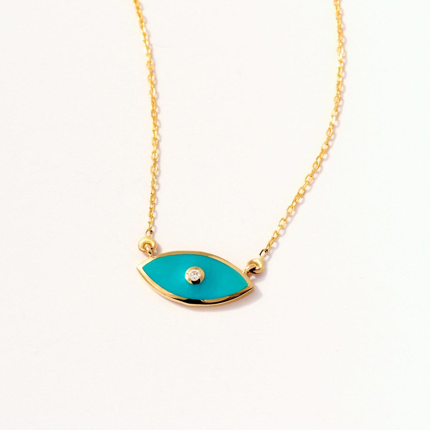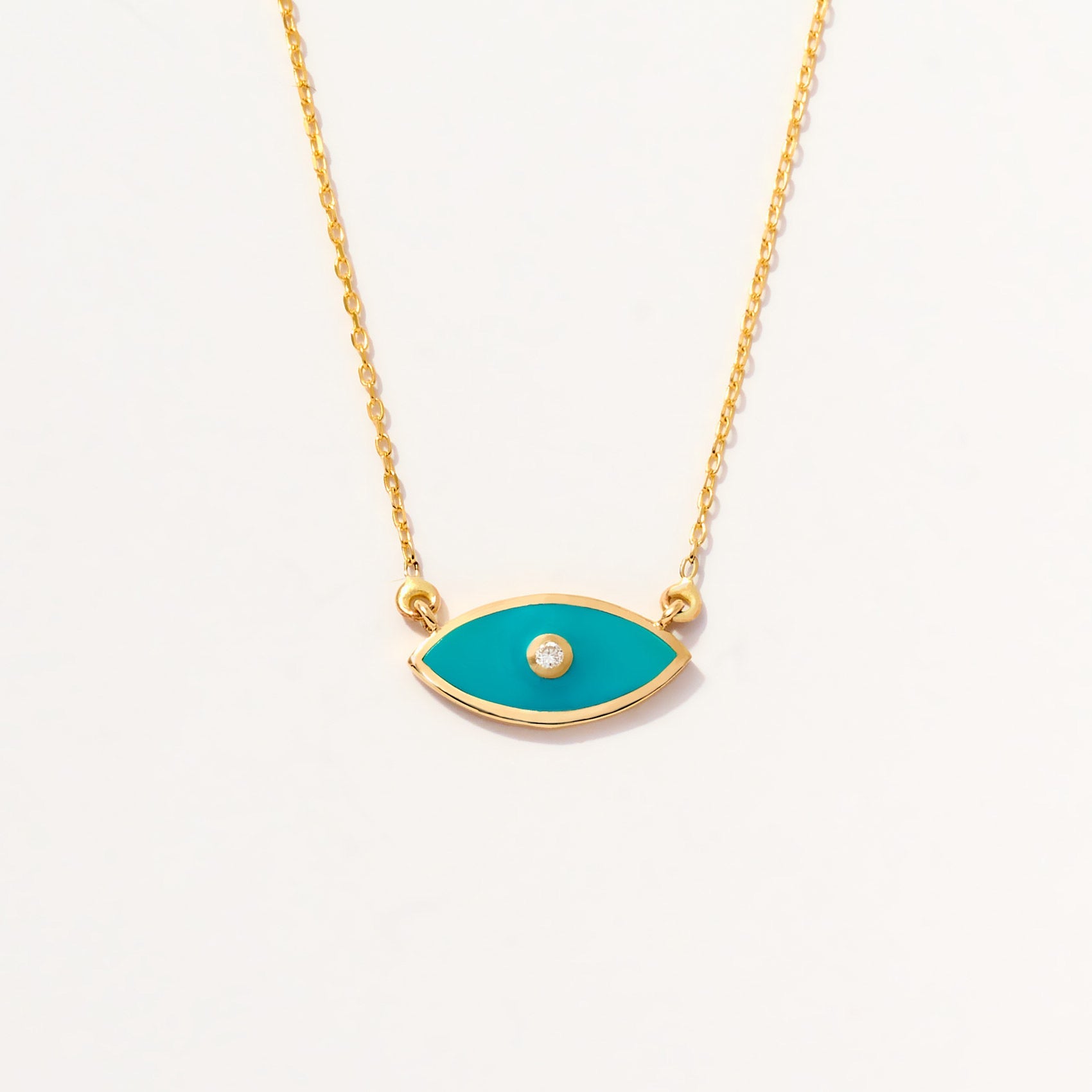 Diamond Enamel Evil Eye Necklace 10K Solid Gold