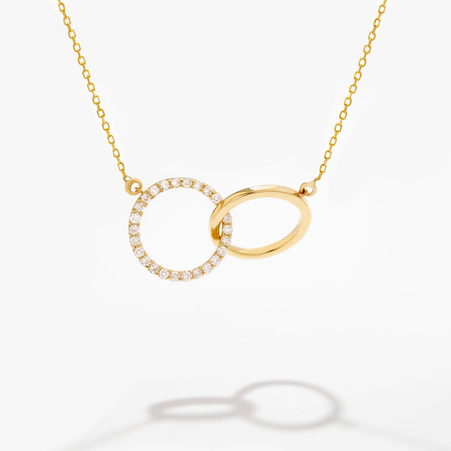Diamond Interlocking Circle Necklace 14K Solid Gold