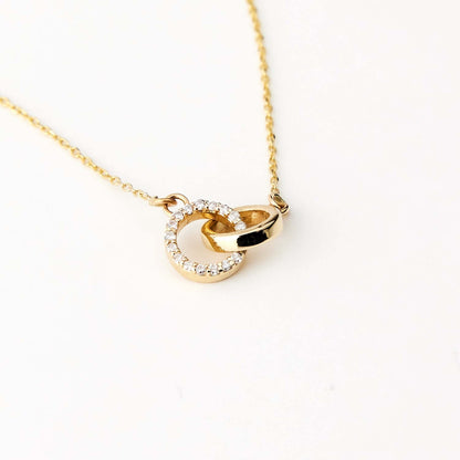 Diamond Intertwined Circle Necklace 10K Solid Gold