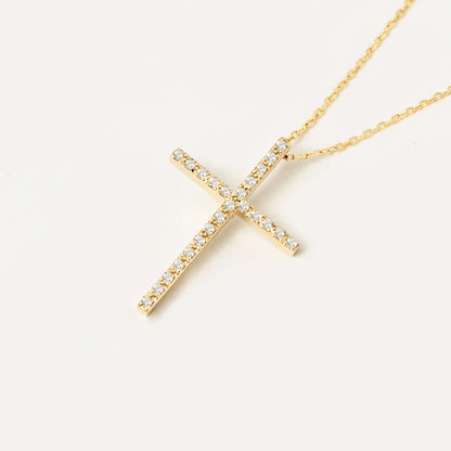 • Diamond Pave Thin Cross Necklace 10K Solid Gold