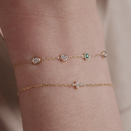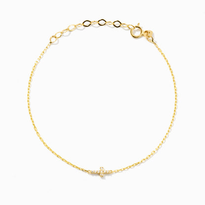 Diamond Tiny Cross Bracelet 14K Solid Gold