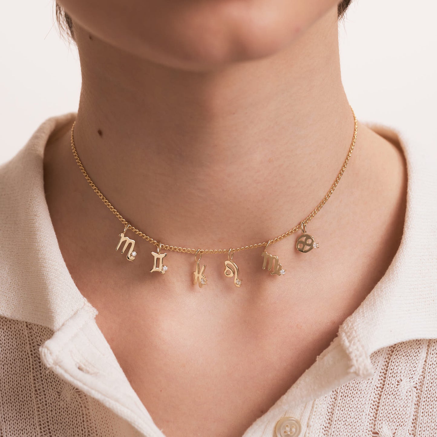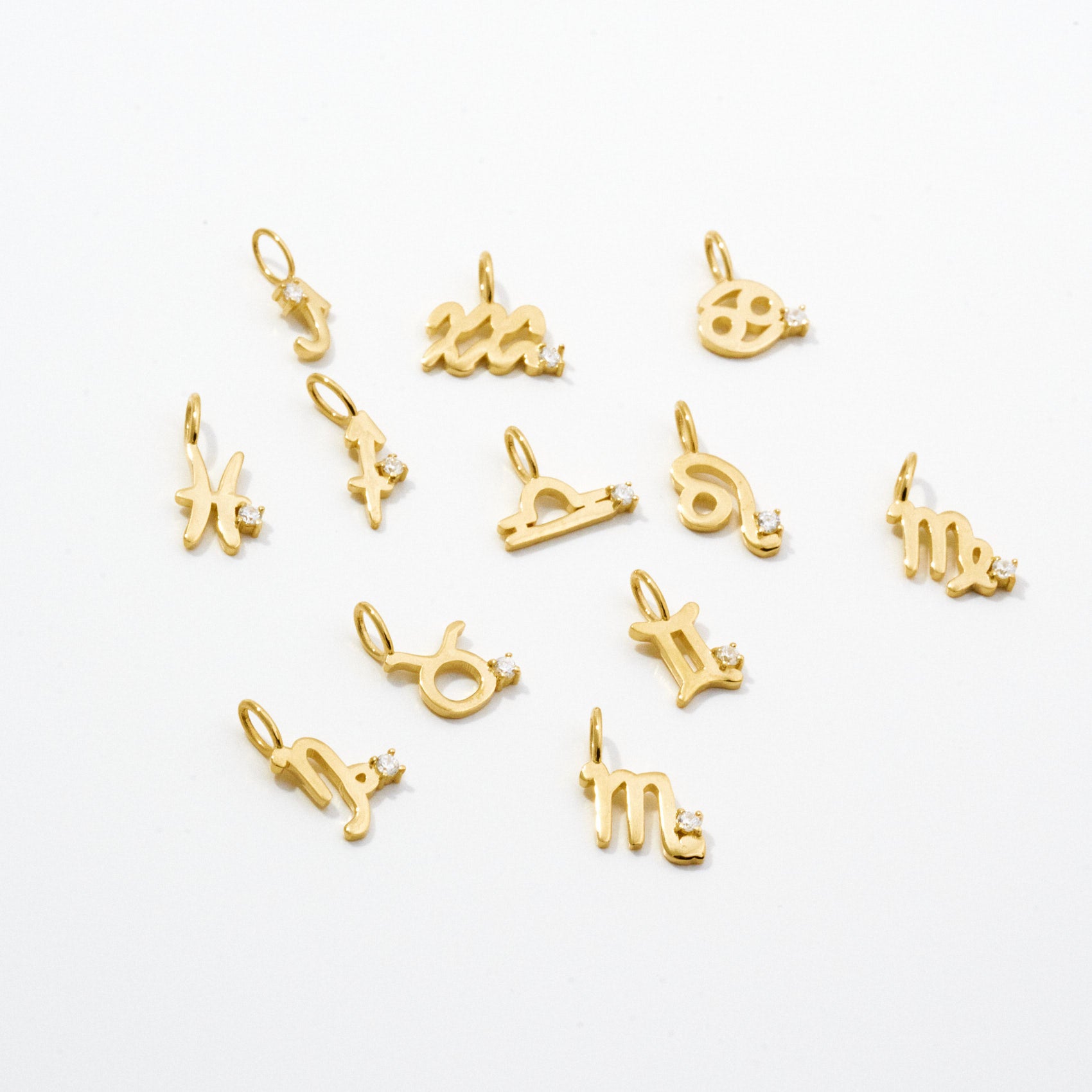 Show off your celestial side with our Diamond Zodiac Charm in 14K Solid Gold. Exquisitely crafted, this unique piece combines luxury and personalization flawlessly. Its high-quality diamonds add a sparkle that enhances your style while the solid gold promises durability. Ideal for astrology enthusiasts or as a personalized gift, our Zodiac Charm is more than just jewelry; it's a statement.