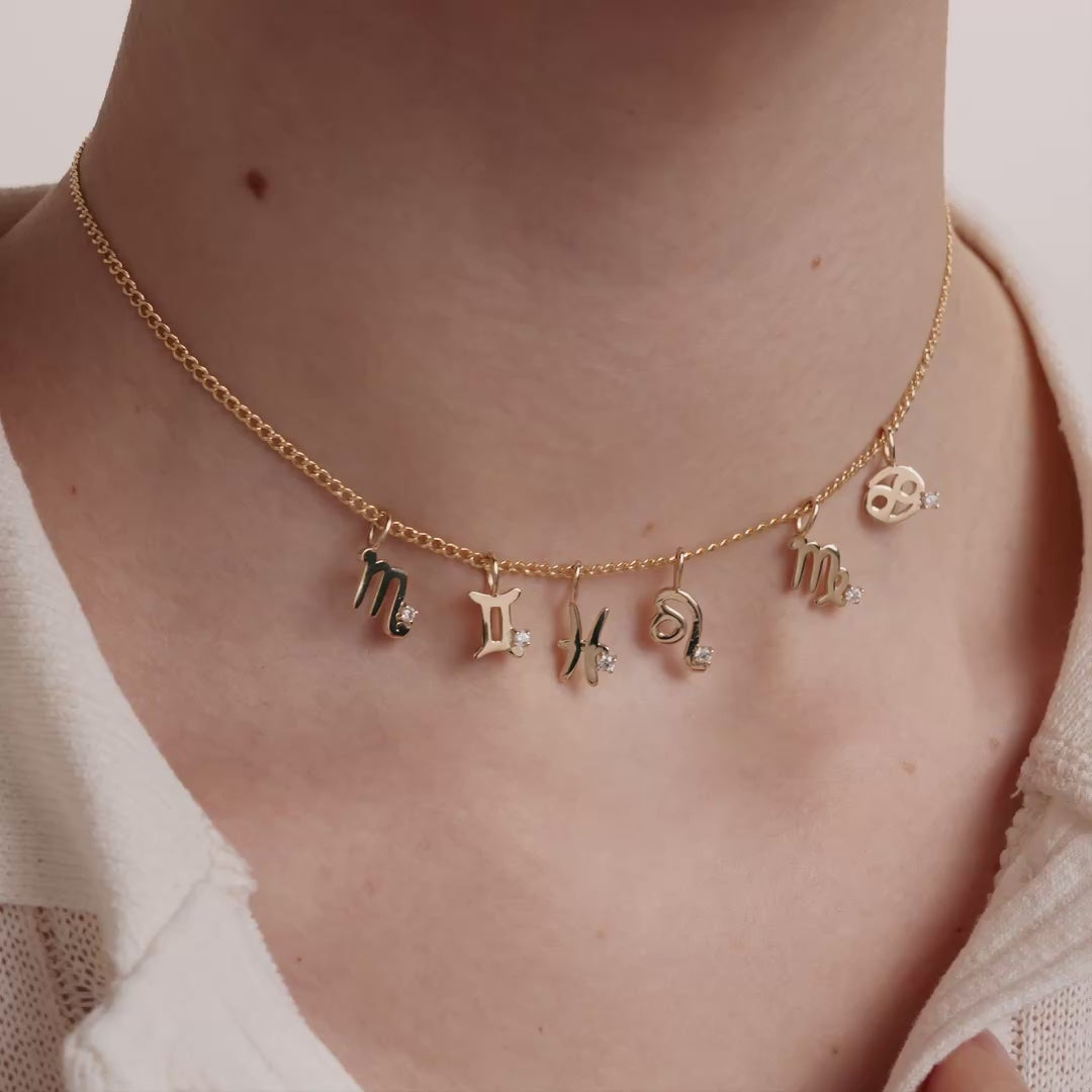 Show off your celestial side with our Diamond Zodiac Charm in 14K Solid Gold. Exquisitely crafted, this unique piece combines luxury and personalization flawlessly. Its high-quality diamonds add a sparkle that enhances your style while the solid gold promises durability. Ideal for astrology enthusiasts or as a personalized gift, our Zodiac Charm is more than just jewelry; it's a statement.