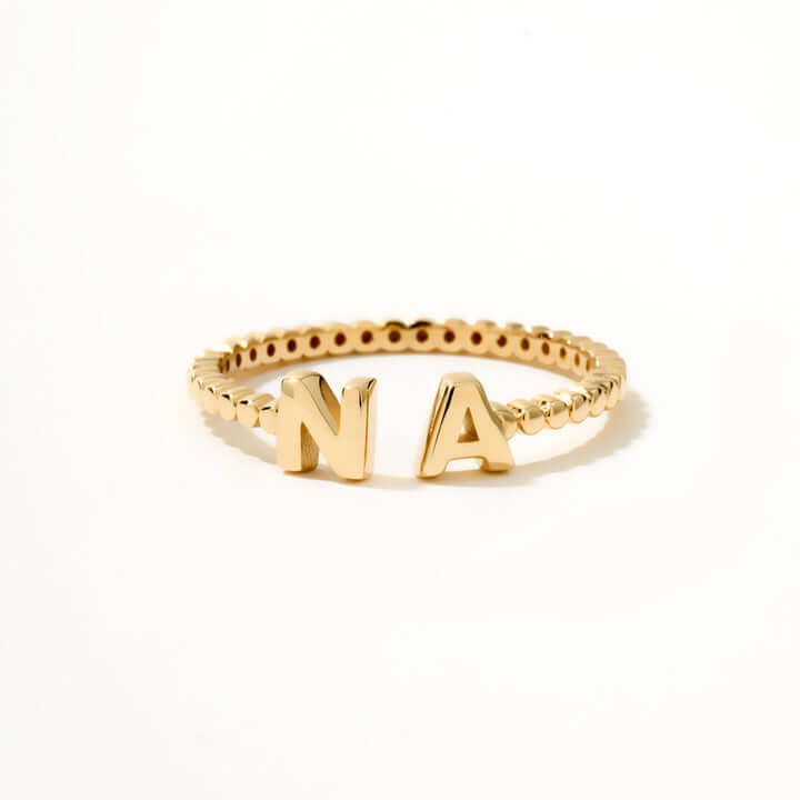 Double Initial Bead Ring 10K Solid Gold