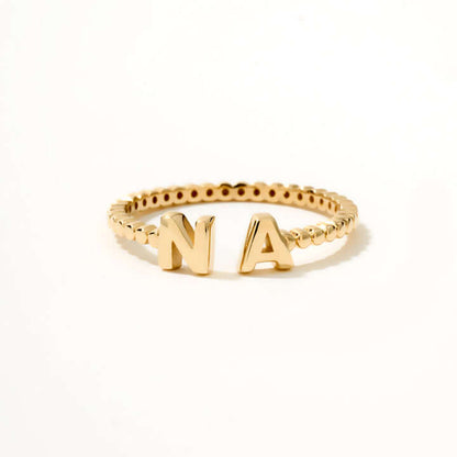 Adorn your fingers with our Double Initial Bead Ring in 10K Solid Gold, a perfect piece to make a style statement. This delicate 10K yellow gold custom ring not only adds a touch of elegance but also personalizes your style with bubble initials. Ideal for women, this dainty two letters bead ring makes for a perfect birthday gift. Its unique design and quality craftsmanship make it a must-have item in your jewelry collection.