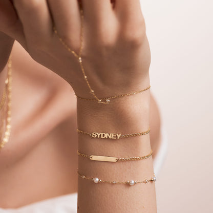 Exceptional Everyday Name Bracelet in 14K Solid Gold is the epitome of bespoke jewelry. This personalized accessory, crafted from top-quality 14K solid gold, allows you to wear your uniqueness with pride. Perfect for everyday wear or special occasions, this name bracelet is both durable and stylish.