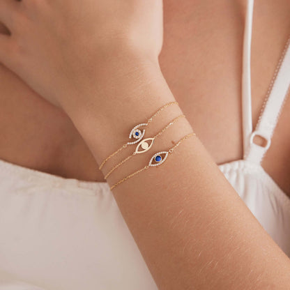 Innovate your style with the Evil Eye Bracelet in 10K Solid Gold for women. This unique accessory not only offers an elegant, timeless look but also provides good luck and protection. The perfect gift for her, our 10K evil eye bracelets are a meaningful symbol of love and care. This piece is a must-have for those seeking stylish, high-quality, and spiritual jewelry. Stand out in the crowd and embrace the power of the evil eye with this solid gold, beautifully designed bracelet.