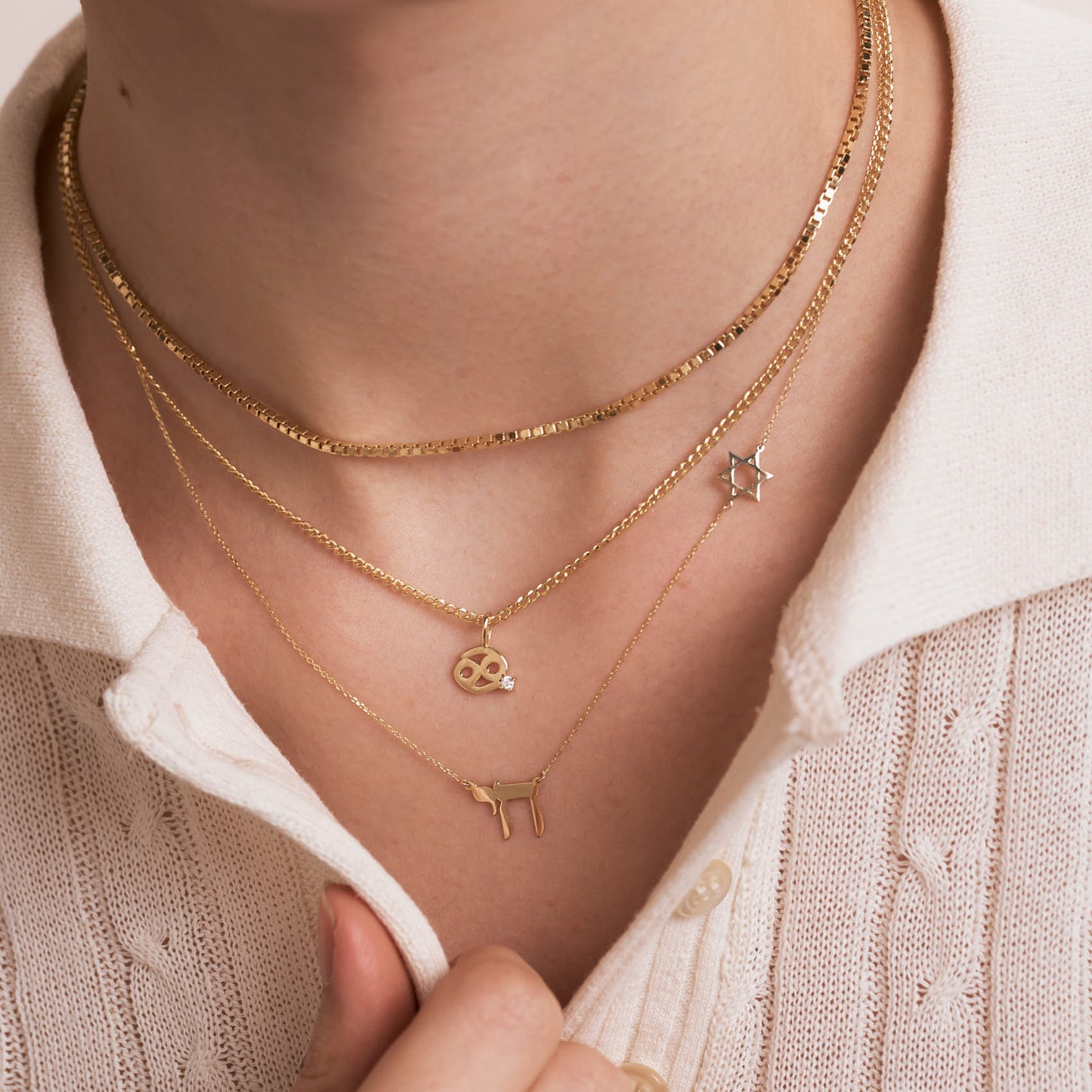 Crafted with intricate detail, this Jewish Star and Chai Symbol Necklace in 14K Solid Gold is a symbol of faith and fashion. Its timeless design showcases your heritage while adding a touch of elegance to any outfit.
