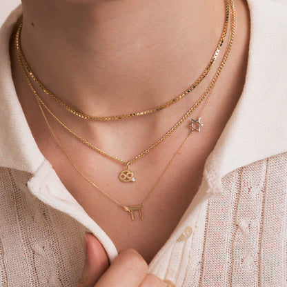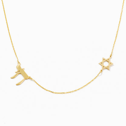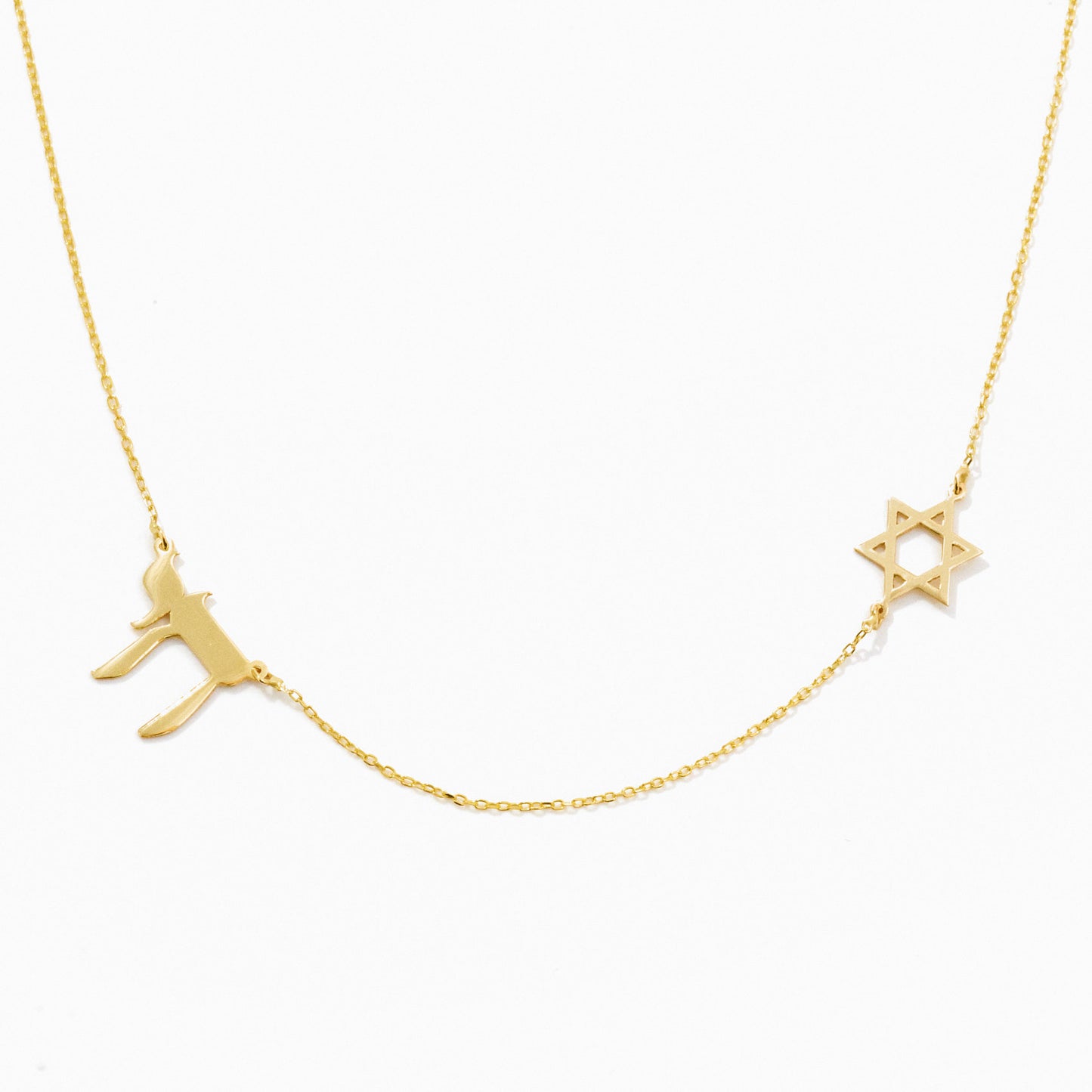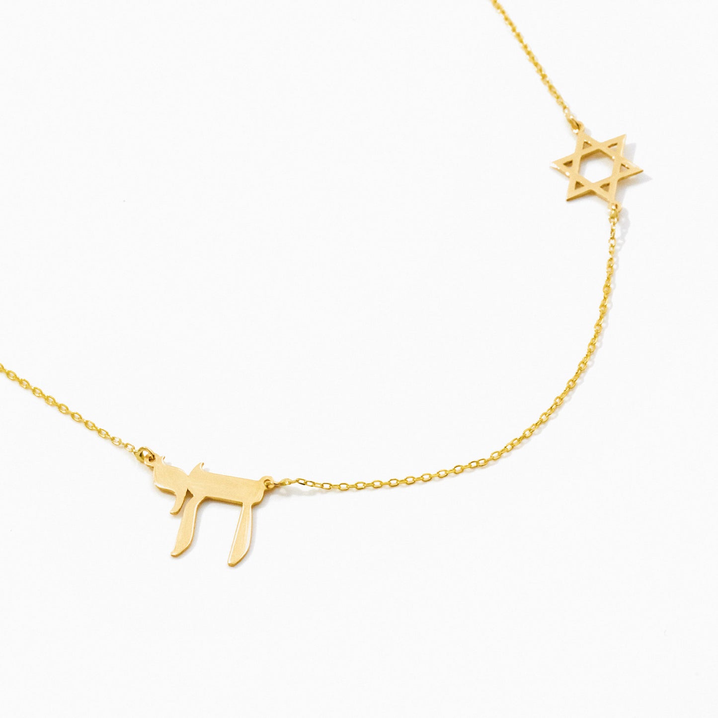 Jewish Star and Chai Symbol Necklace 14K Solid Gold
