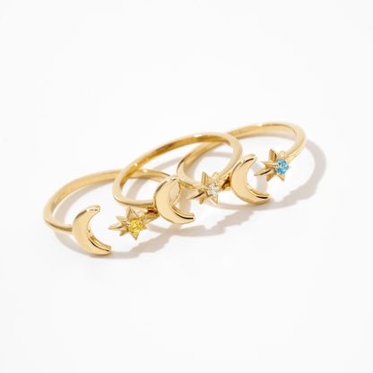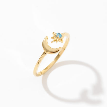 Moon & Star Birthstone Ring
